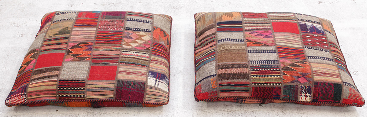 398679. PILLOW CASES, 2 pcs, Kilim patchwork, 90 x90 cm.