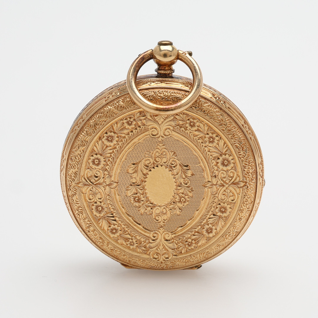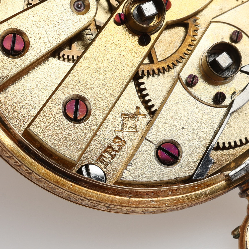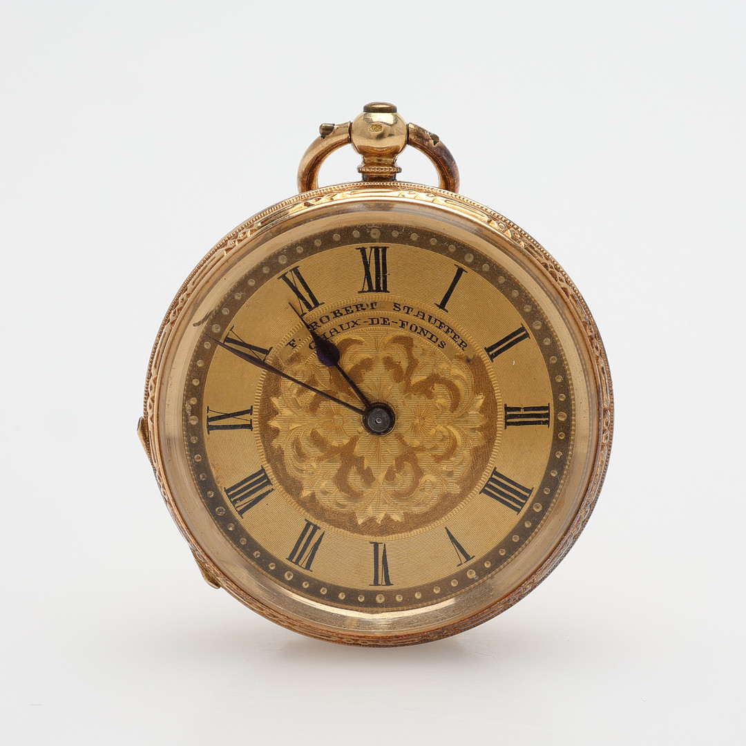 3995081. A pocket watch by F. ROBERT STAUFFER, 18k gold, cylinder work with key assignments, second half of the 19th century, 35,3 g.