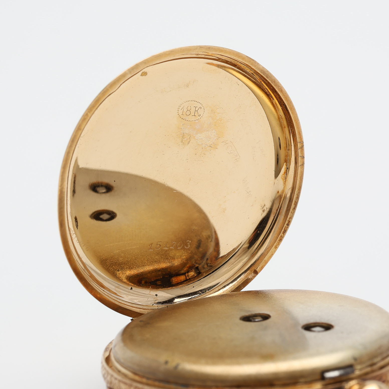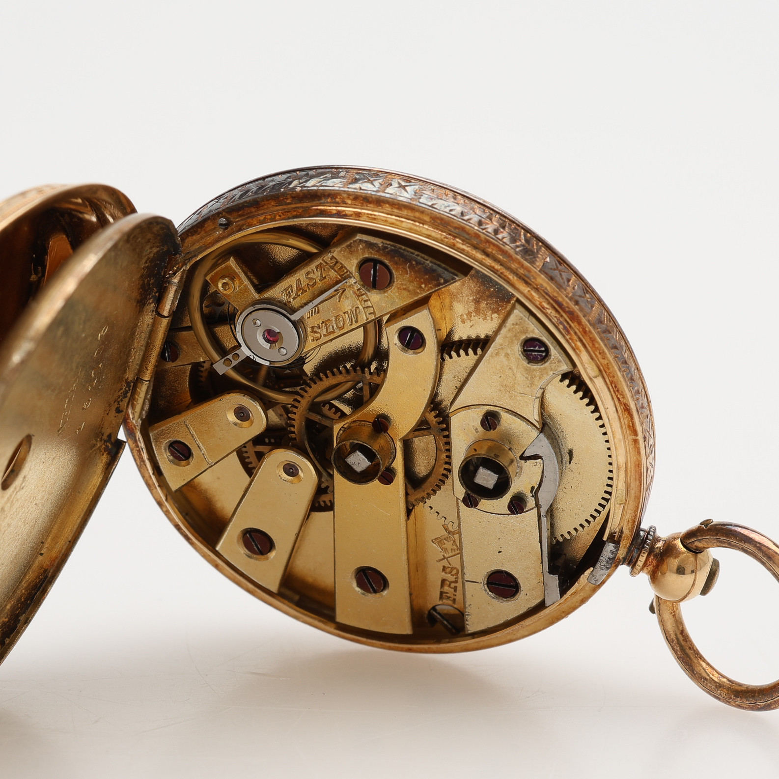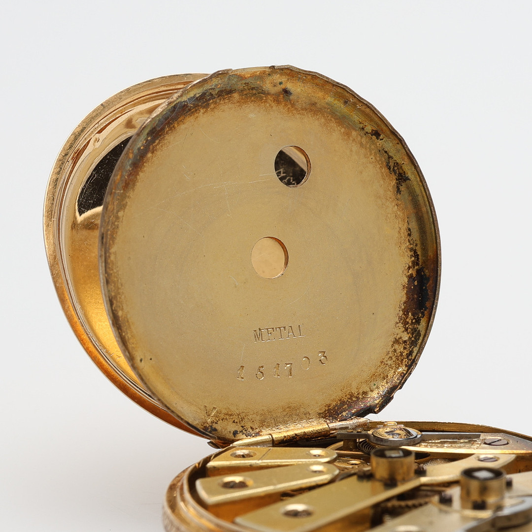 3995081. A pocket watch by F. ROBERT STAUFFER, 18k gold, cylinder work with key assignments, second half of the 19th century, 35,3 g.