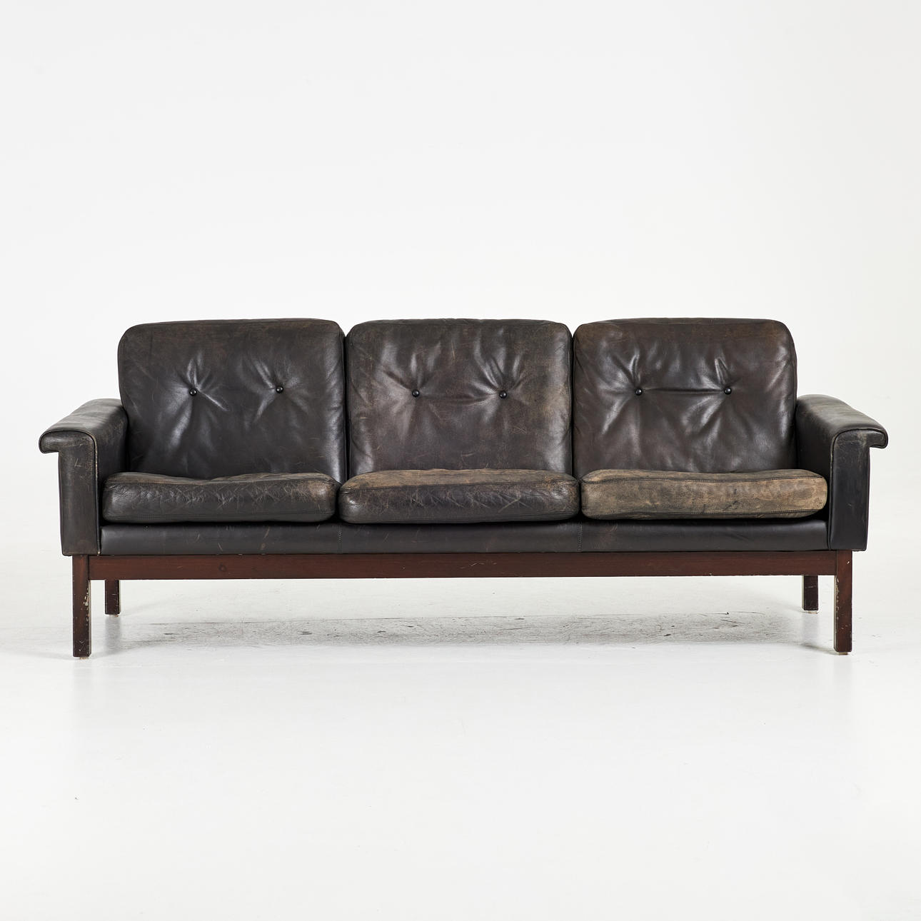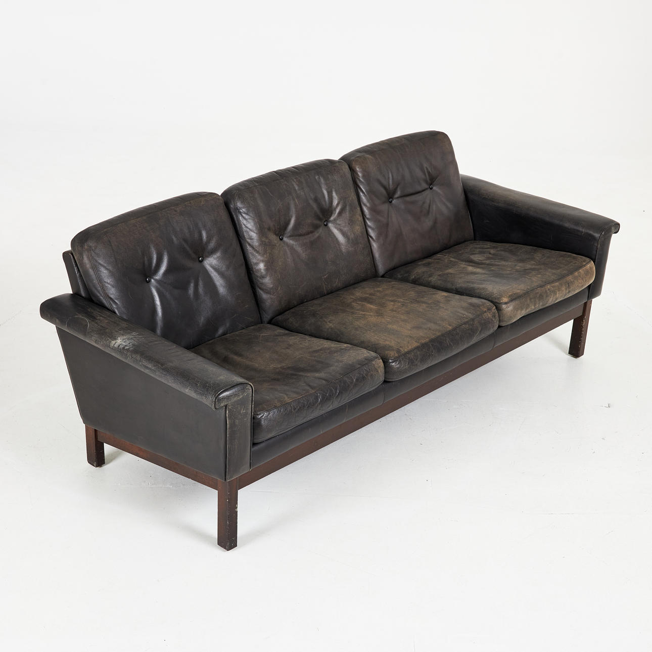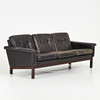 3997714. SOFA, approx 1960/70s, black leather, removable plush sleeves.