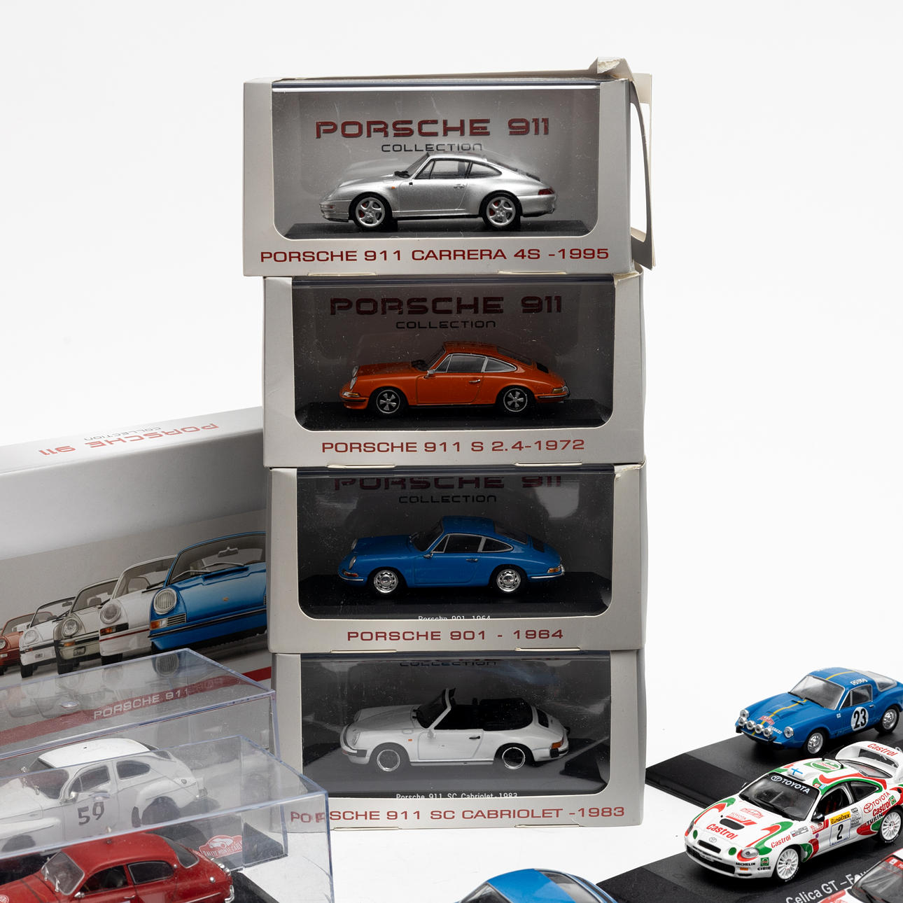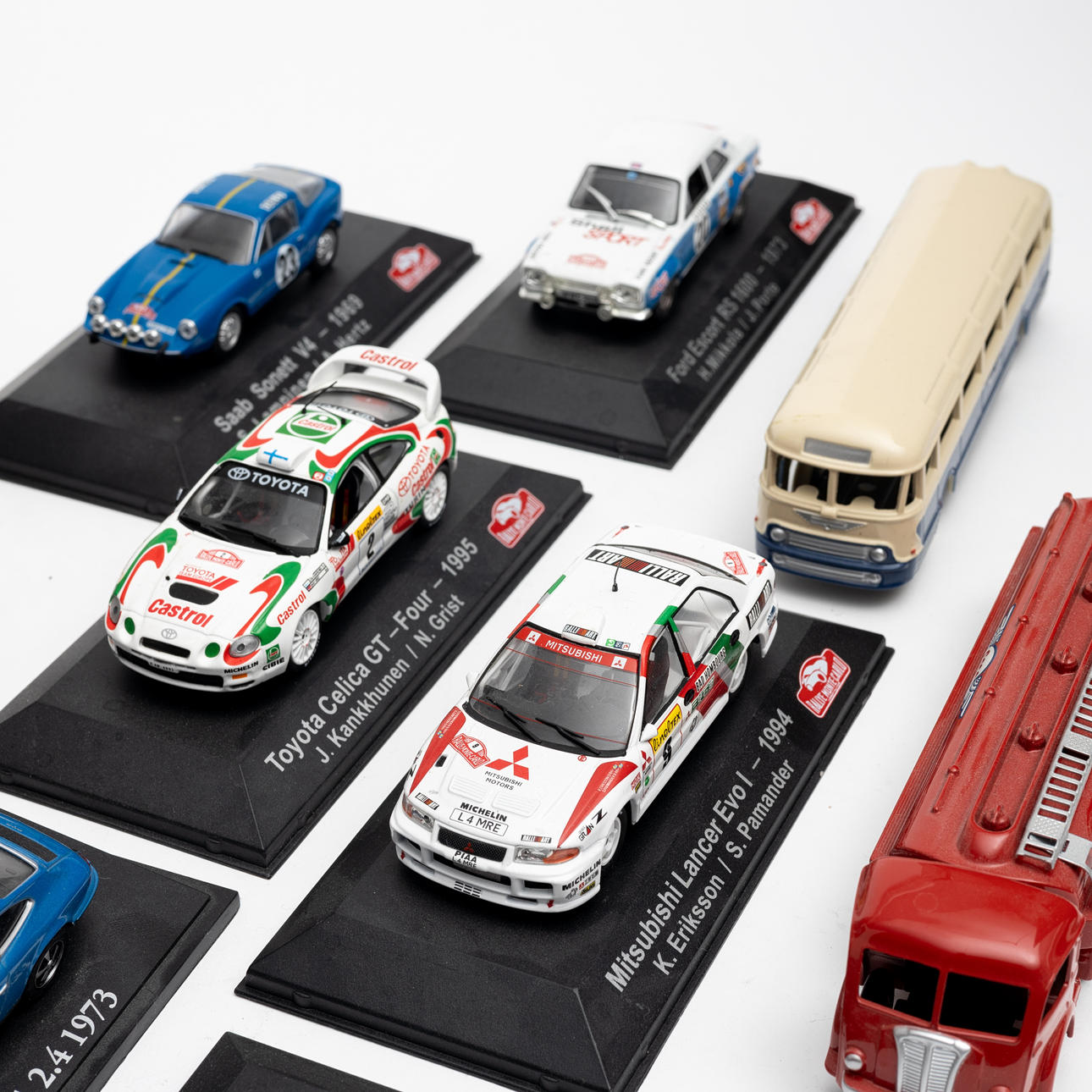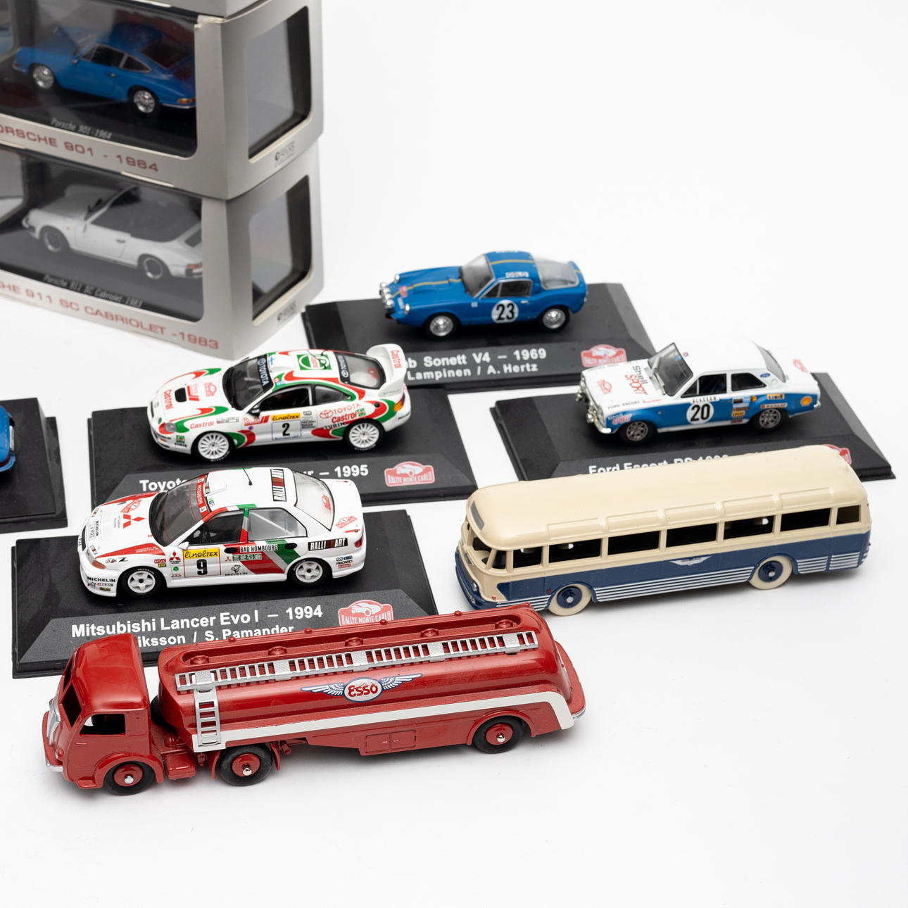 1:43, length approx. 10 cm. Added 2 replica Dinky Toys.
