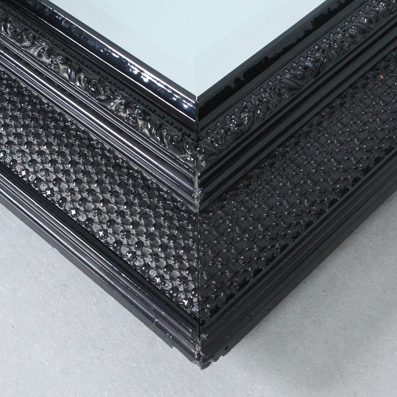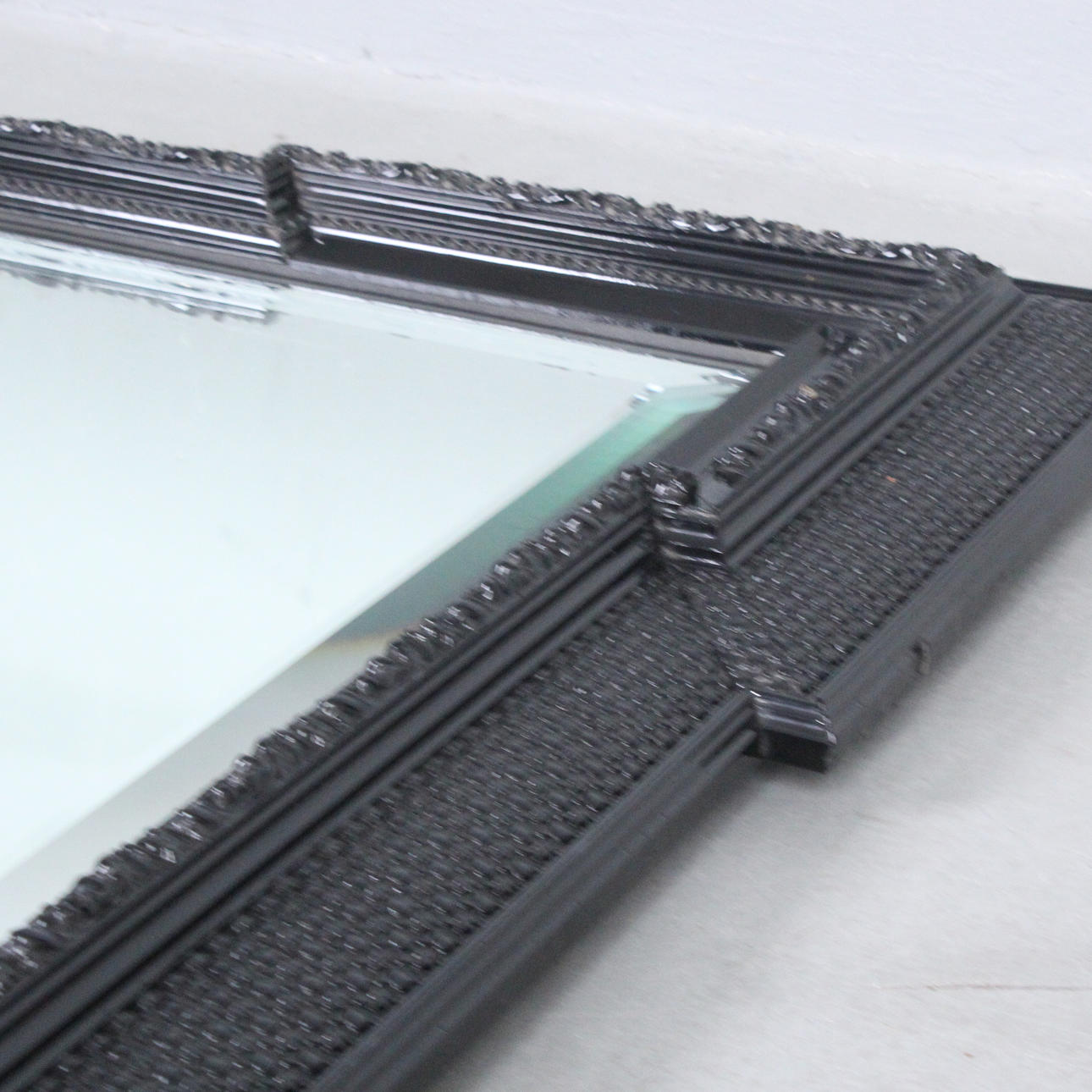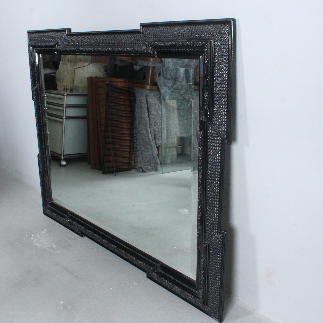 Large mirror/ wall mirror, frame made of black lacquered wood, Dimensions approx.: 132 x 103 cm.