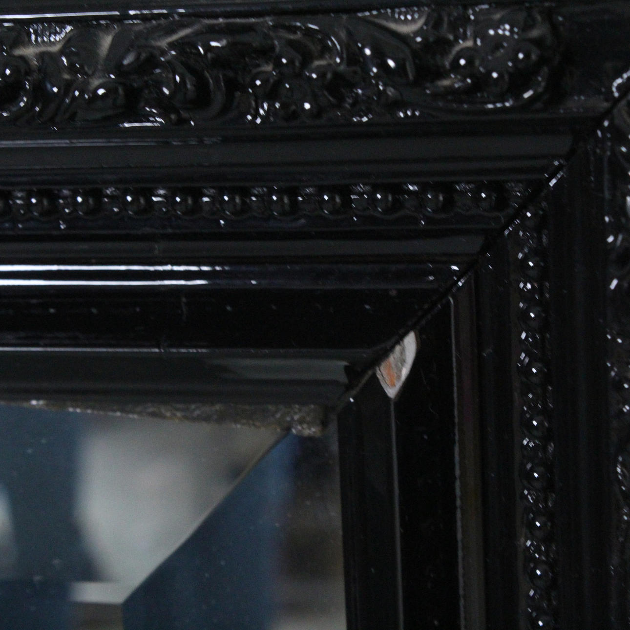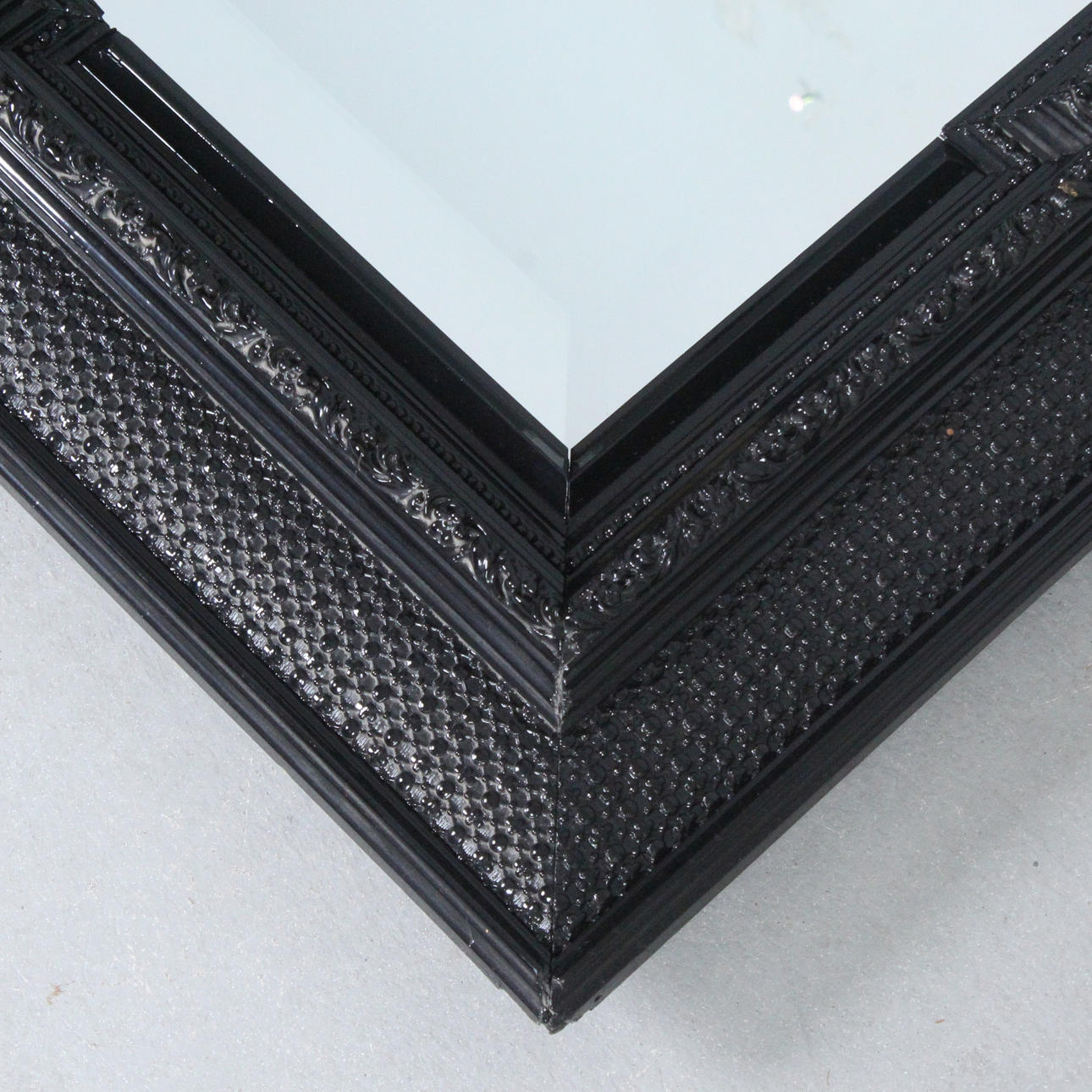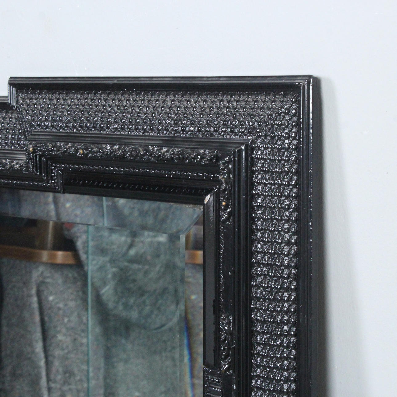 Large mirror/ wall mirror, frame made of black lacquered wood, Dimensions approx.: 132 x 103 cm.