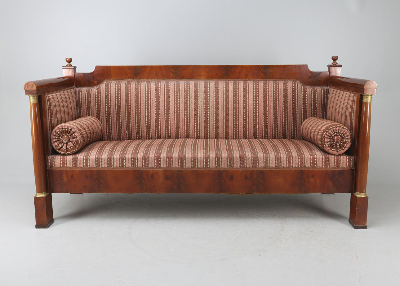 Magogny veneered with gilded fittings. Length 200 cm. Back height 95 cm.