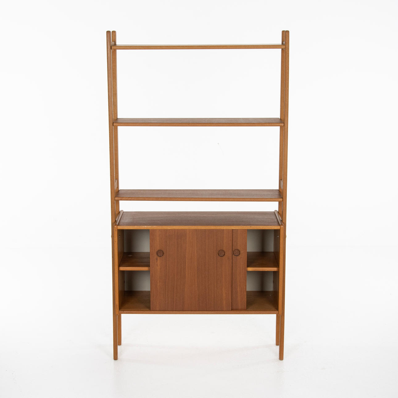 Bookcase with cabinets, teak, removable shelves, cabinets with sliding doors and removable shelves. All parts removable.