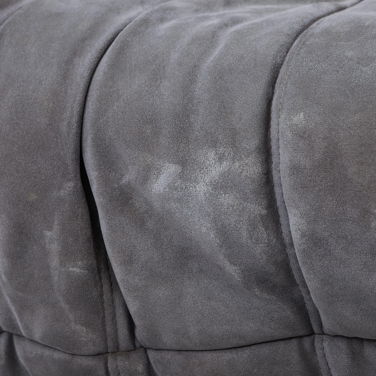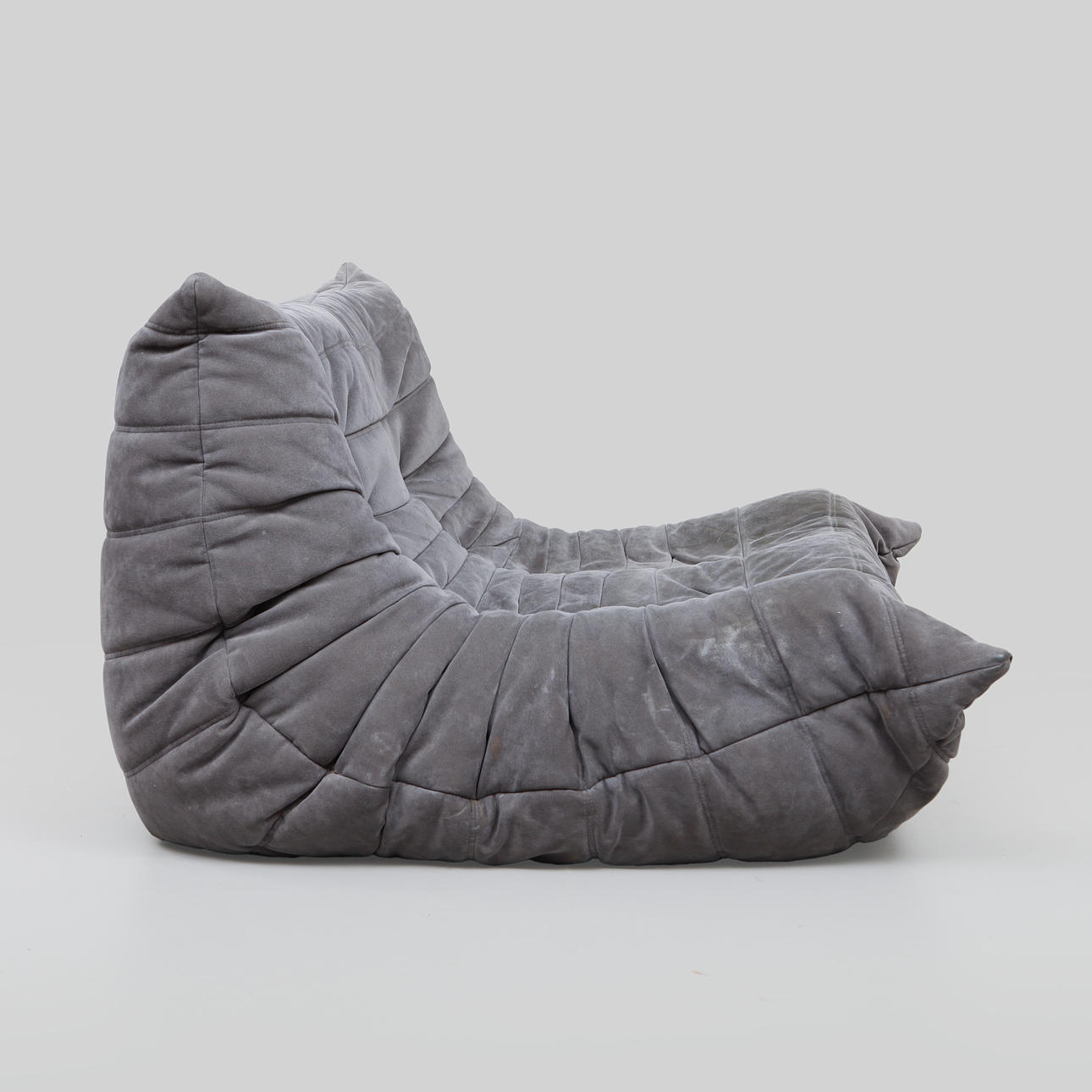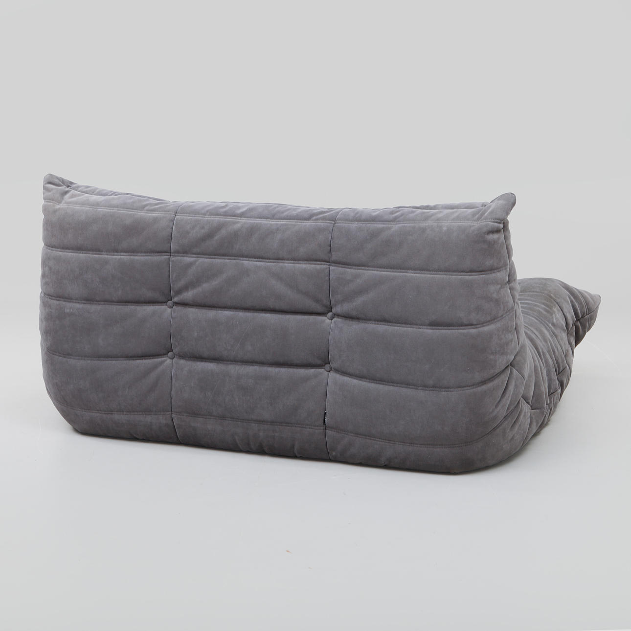 Gray upholstery in alcantara. Length 130, depth 130, height 70 cm.