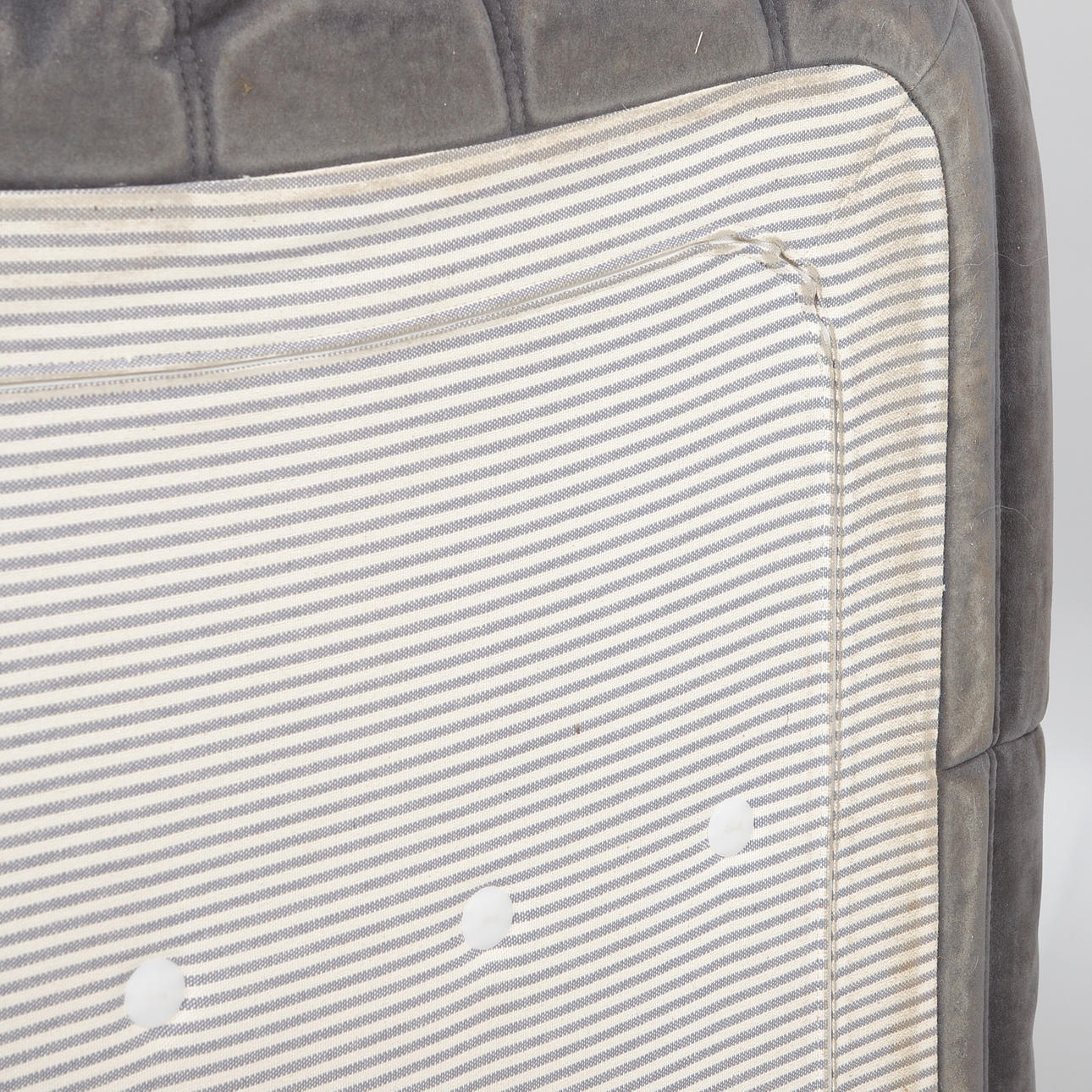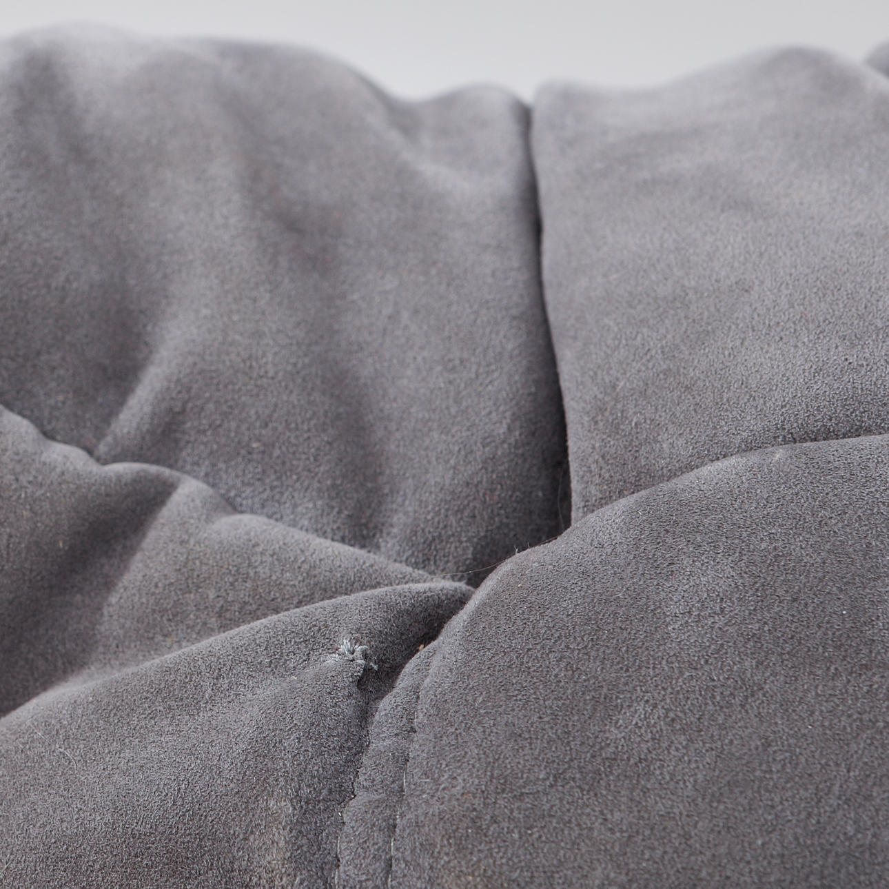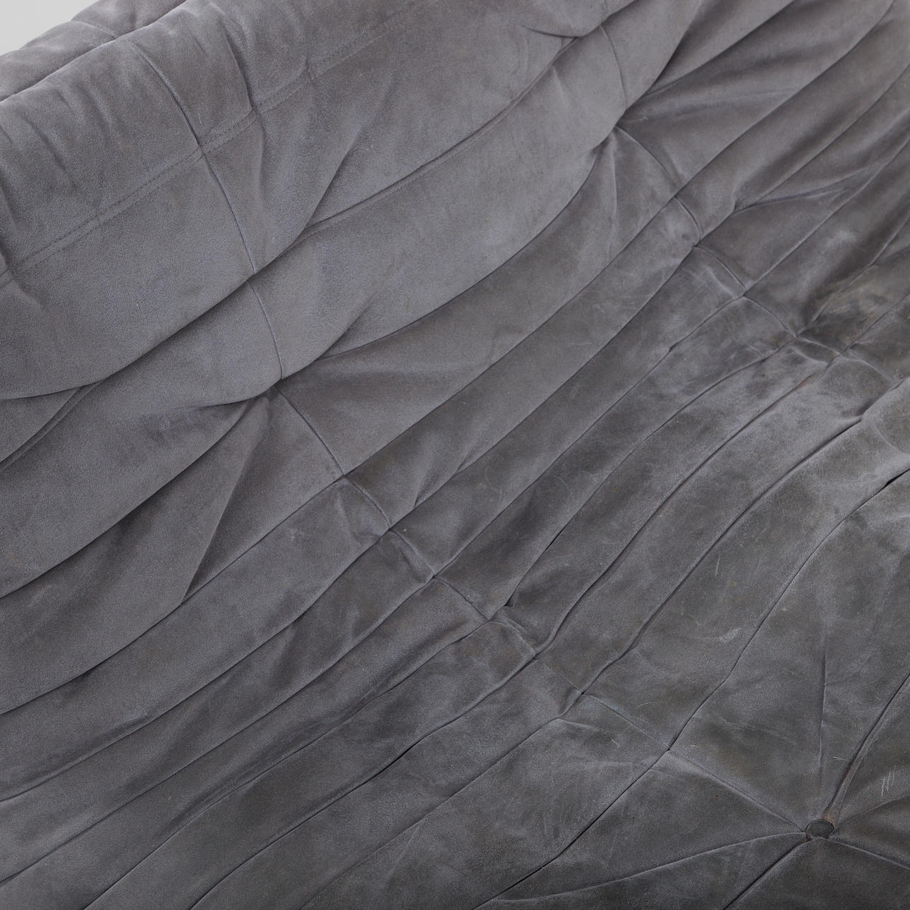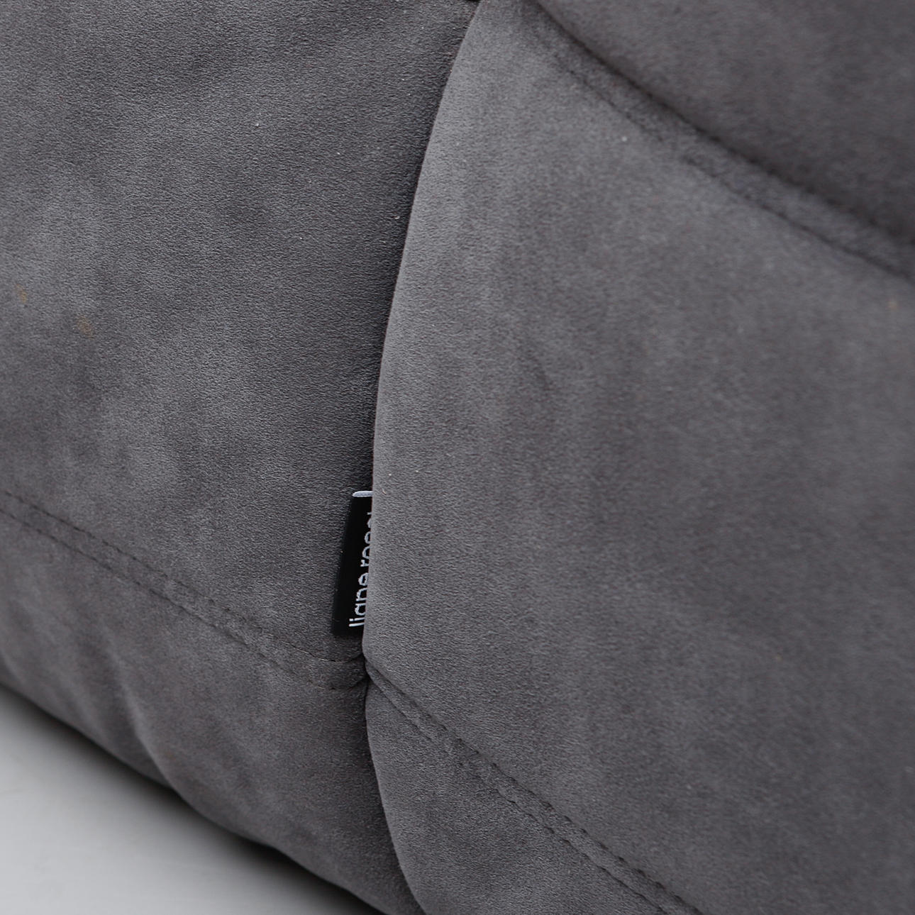 Gray upholstery in alcantara. Length 130, depth 130, height 70 cm.