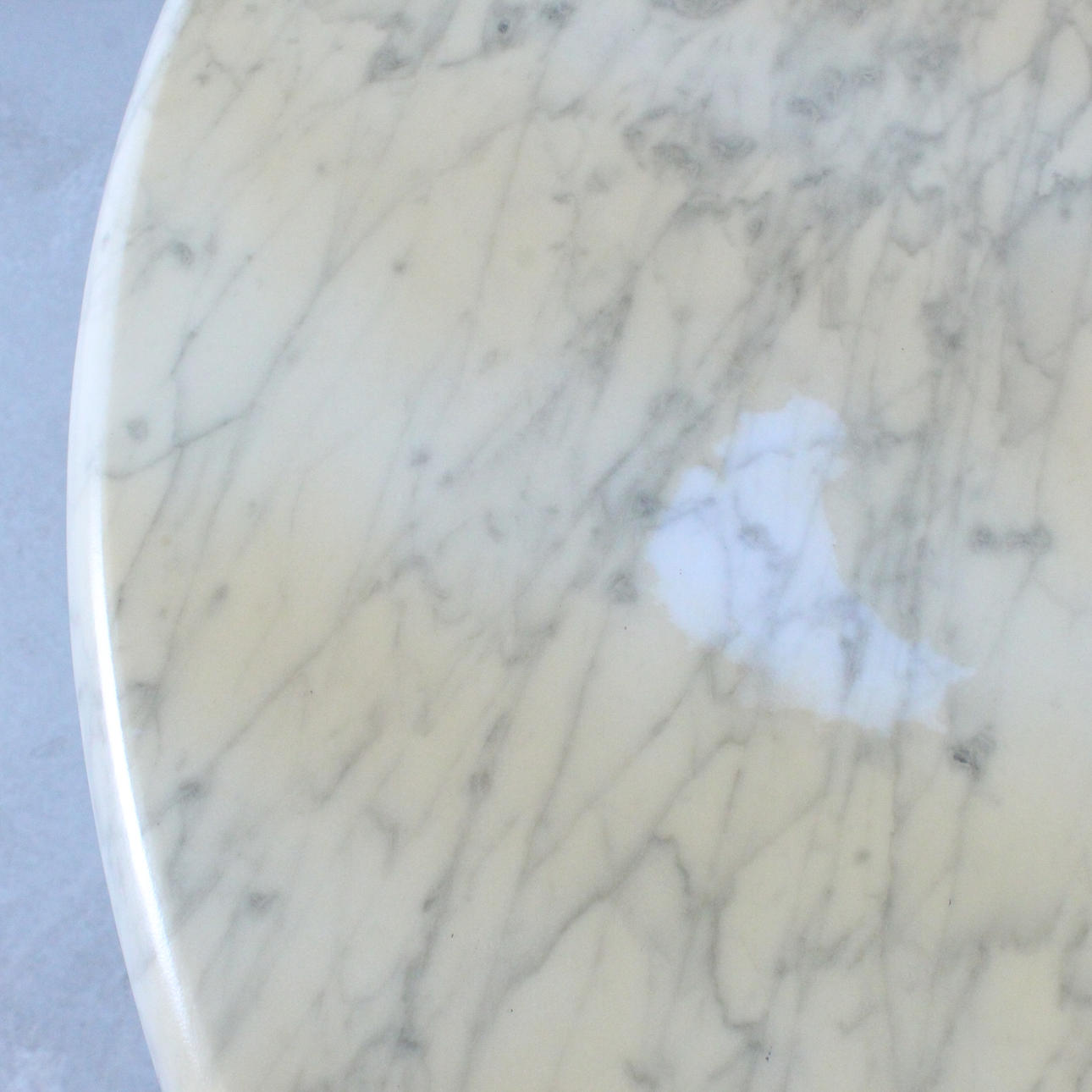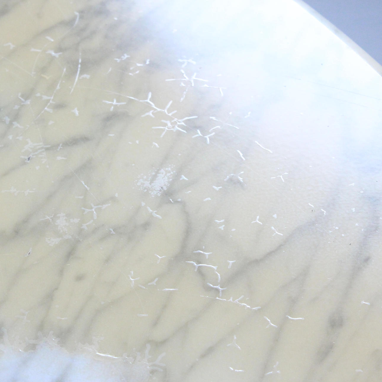 Age-appropriate signs of use and rubbing, partial scratches in marble, protective varnish yellowed and in places with chipping, detachment and discoloration.