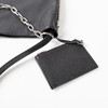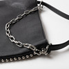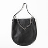 Shoulder bag in black “pebbled leather” with metal rivets, adjusting chain. Lined in light grey cotton canvas. Interior with removable black pocket. Material guide included as well as dustbag.