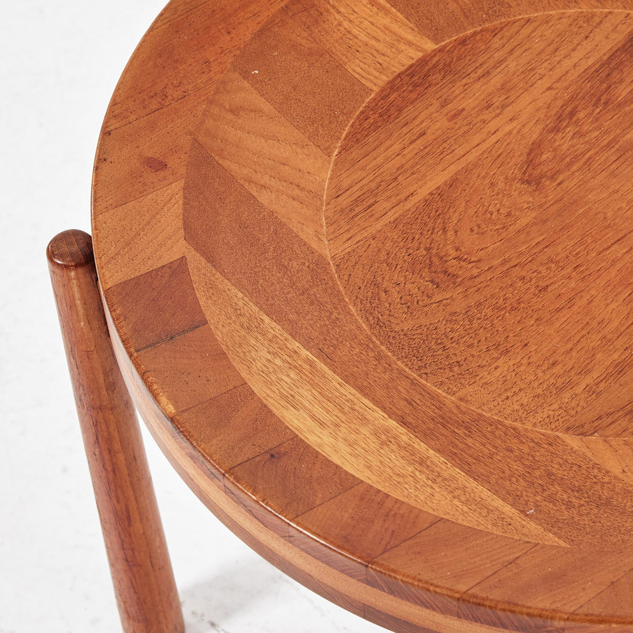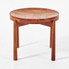 Stick glued teak, reversible board, diameter 50 cm, height 43 cm.