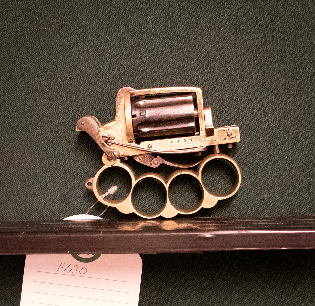 Knuckle iron revolver French Make L.Dolne Caliber 5mm pin. Additional No. 5450. Pipe length/drum 4cm. Folding trigger and folding knife.