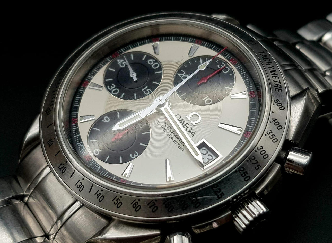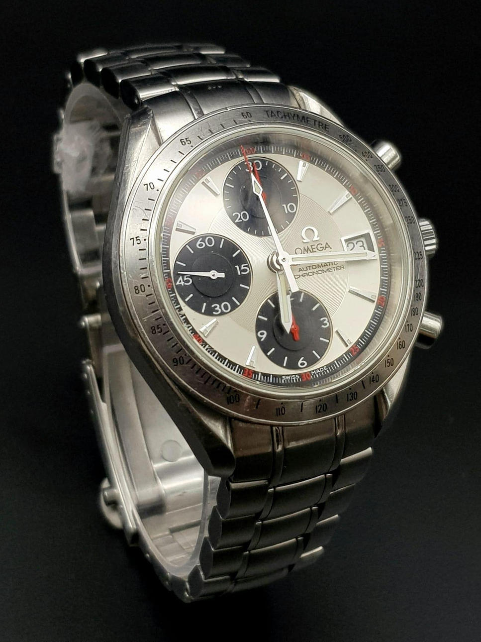 AN OMEGA "SPEEDMASTER"CHRONOMETER AUTOMATIC WITH 3 SUBDIALS AND DATE BOX, 40mm.