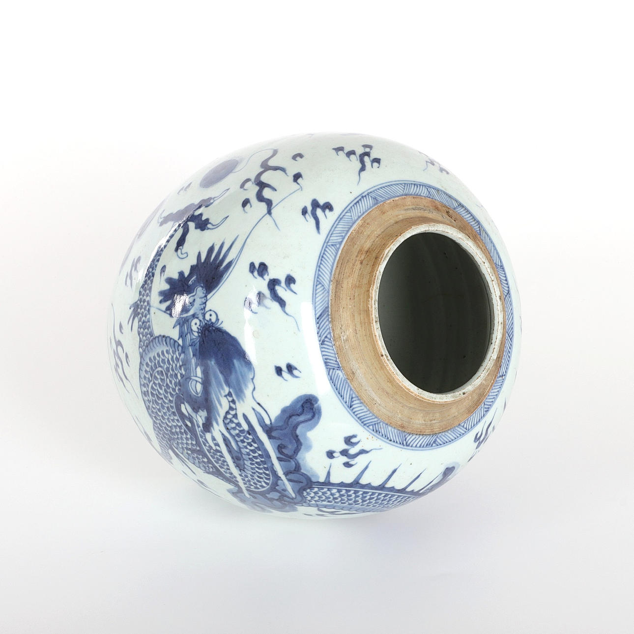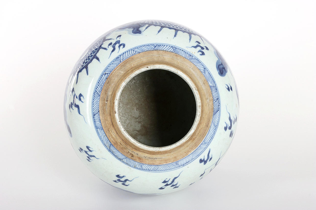 Large buoy with dragon, porcelain, underglaze blue, unglazed mouth. China 17th/19th century.