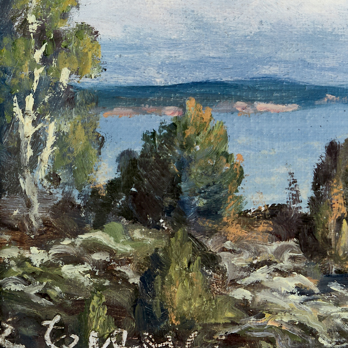 4033367. UNIDENTIFIED ARTIST, Sunlit pines, signed.