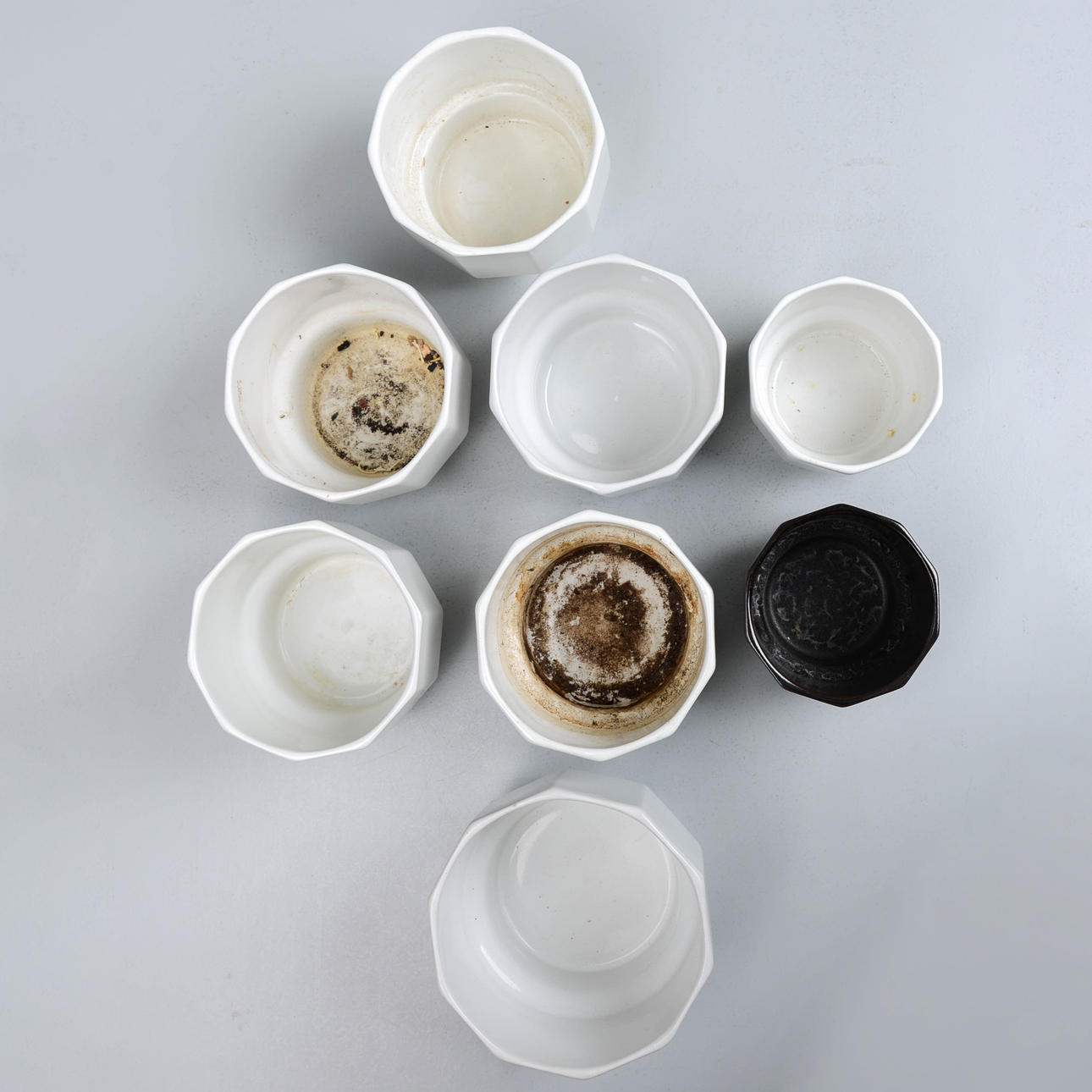 5 pots with the height: 12.5 cm. 2 pots with the height: 10 cm. 1 pot with height:13 cm.