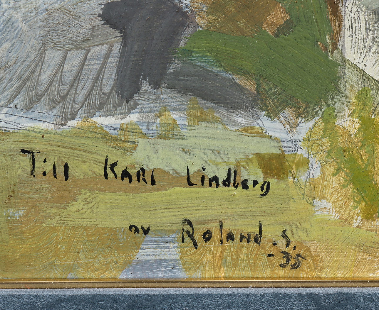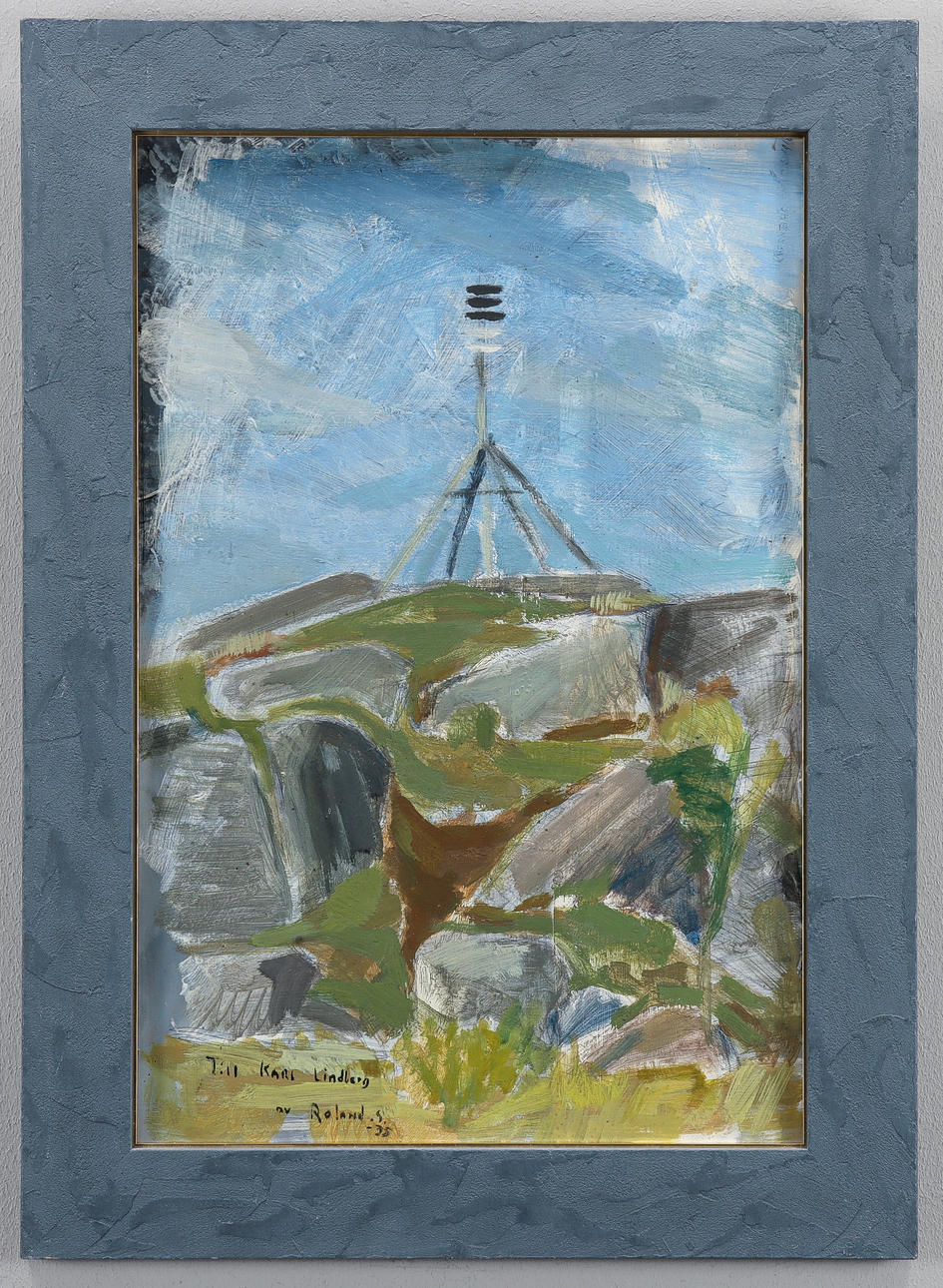 Oil on paper, signed and dated Roland S. He's 35. With dedication a verso To Karl Lindberg Ramsmora på Möja.