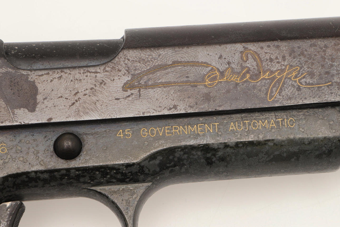 A replica Colt 1911 '45 Government Automatic' JW1846 'John Wayne Armed Forces Commemorative'. 23 cm.