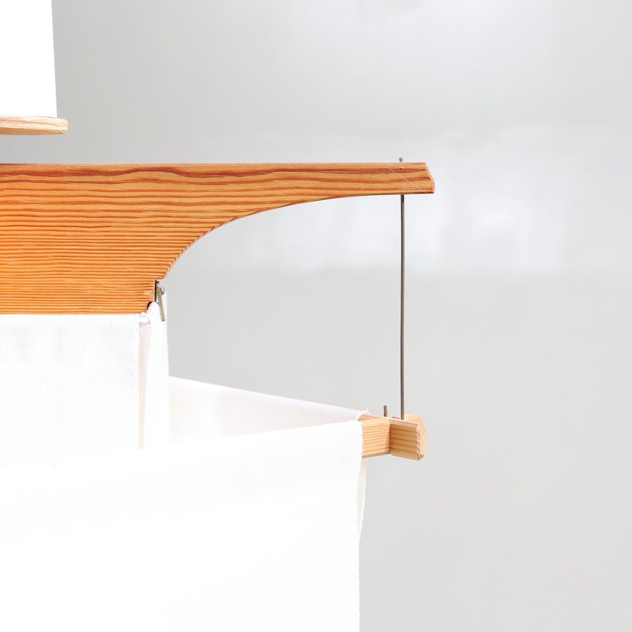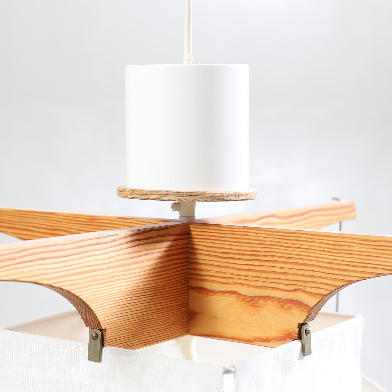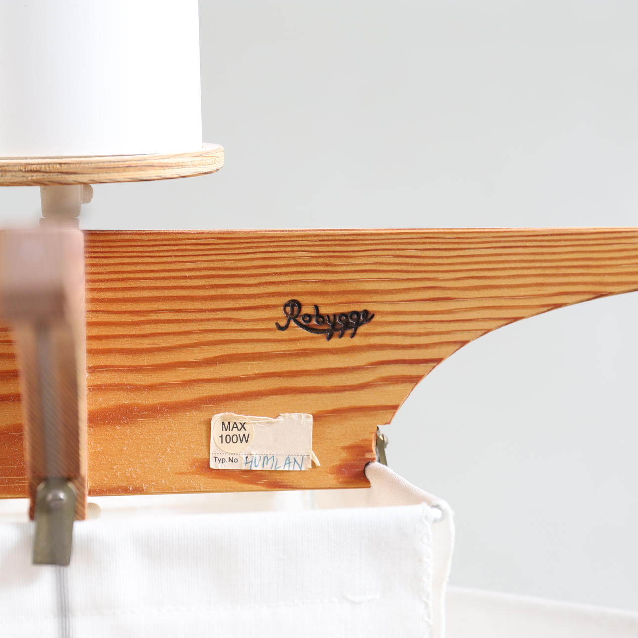 4051866. ERIK ASMUSSEN. A pine & textile ceiling lamp, “Bumblebee”, Robeldge A.B., second half of the 20th century.