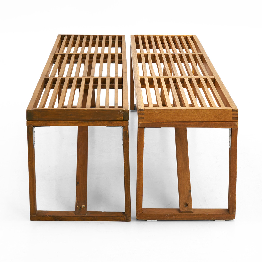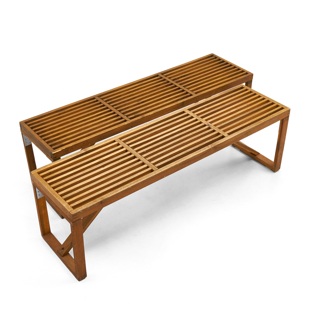 4058690. BENCHES, 2 pcs, stained wood.