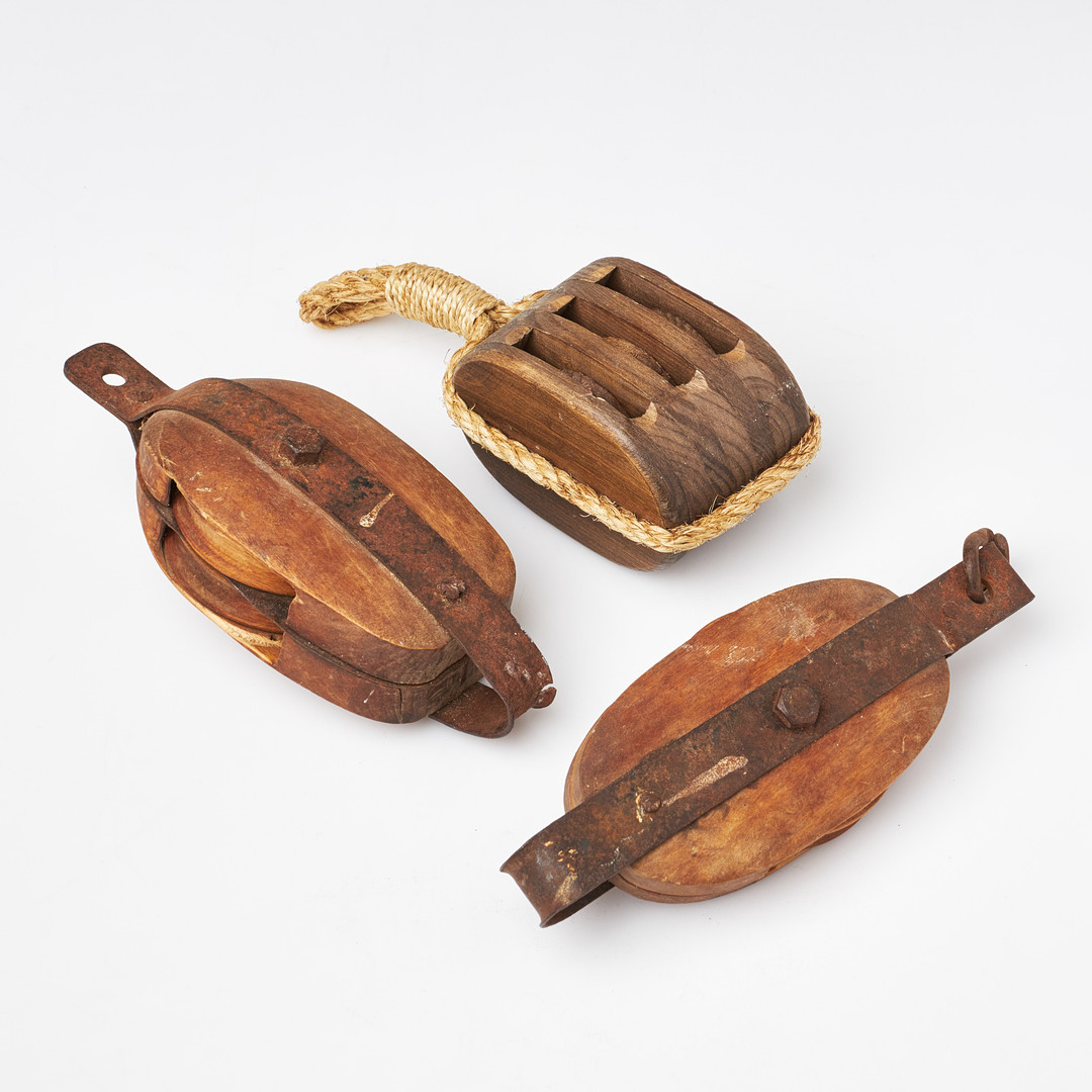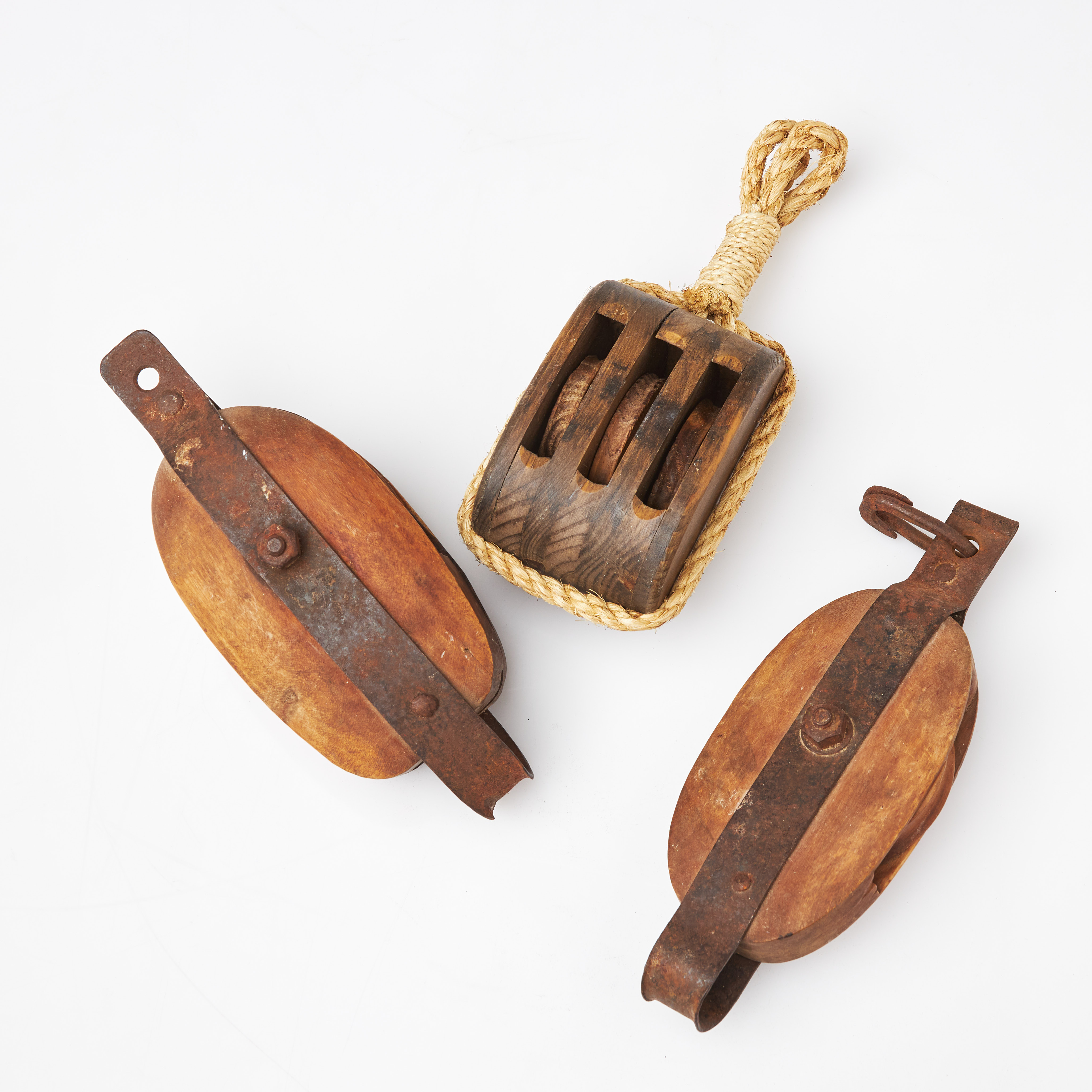 4060059. PULLEYS & BLOCK PULLEYS, 3 pieces.