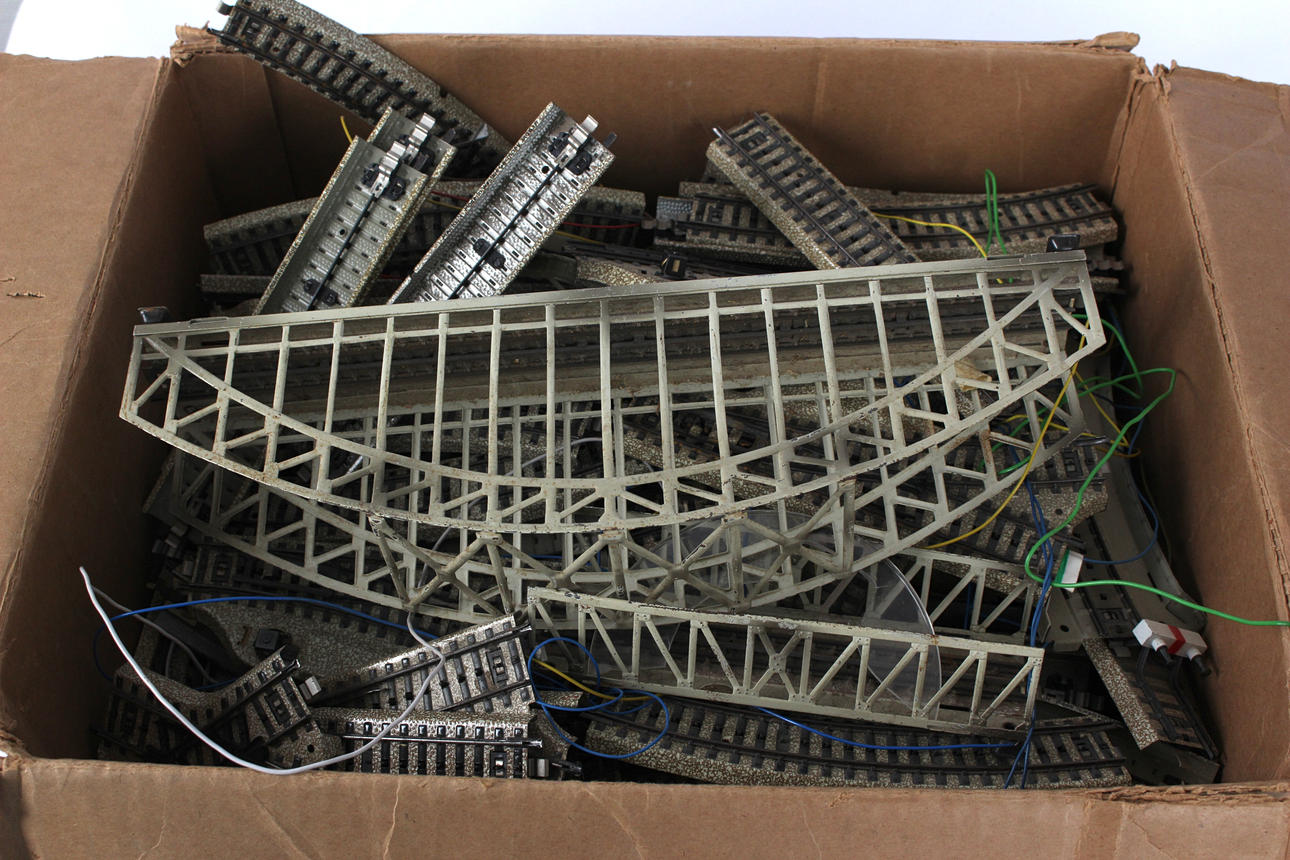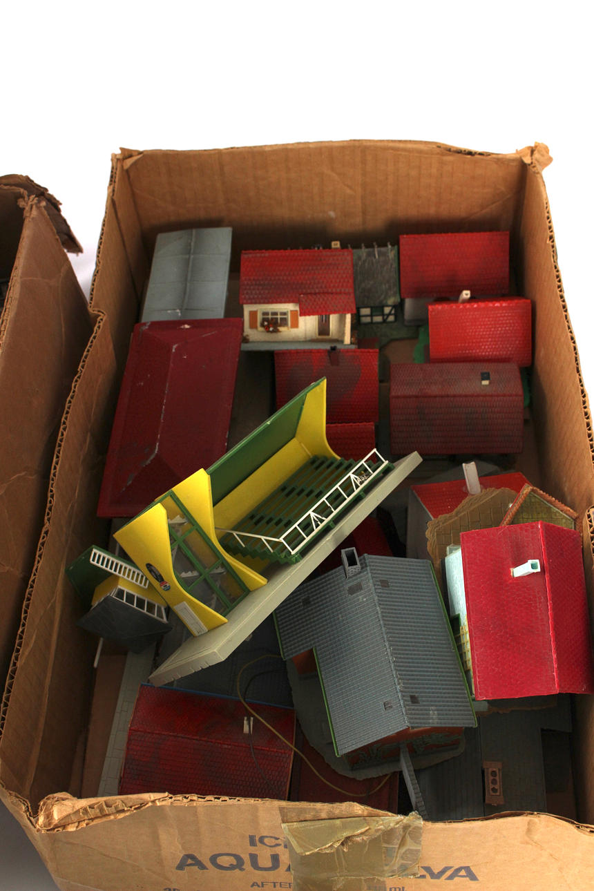 A LARGE COLLECTION OF MODEL TRAIN EQUIPMENT.