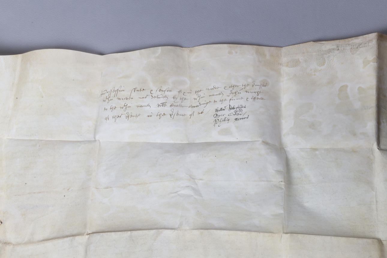 indenture for John Wright of Suffolk, with on red wax seal, 59cm by 49cm.