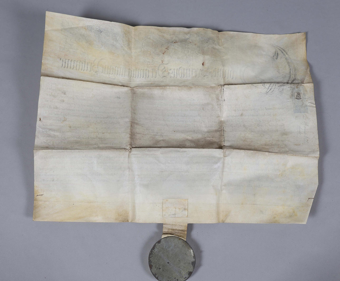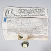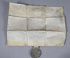 The wax seal with breakages and losses, document with some folding and creases.