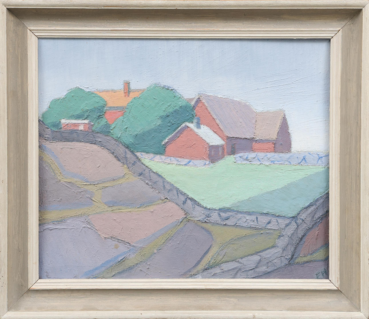 4064220. ERIK HOLMBERG. Landscape with farm, oil on panel, monogram signed.