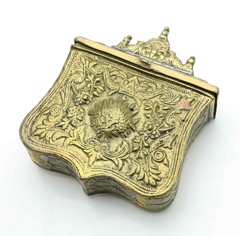 4064625. A YATAGHAN, Ottoman, 18th/20th century, with horn attachment, blade with writing, leather-covered wooden tub with metal fittings.
