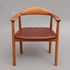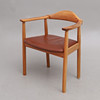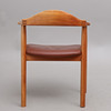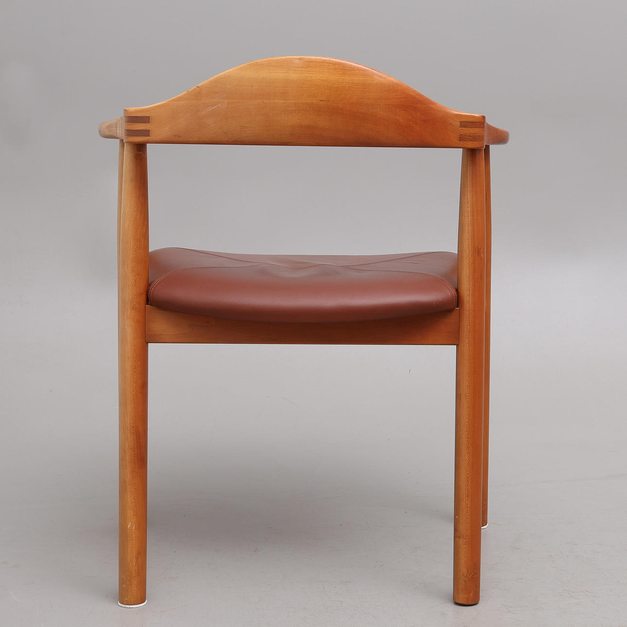 Frame in lacquered wood, leather seat, label marked, back height 76 cm.