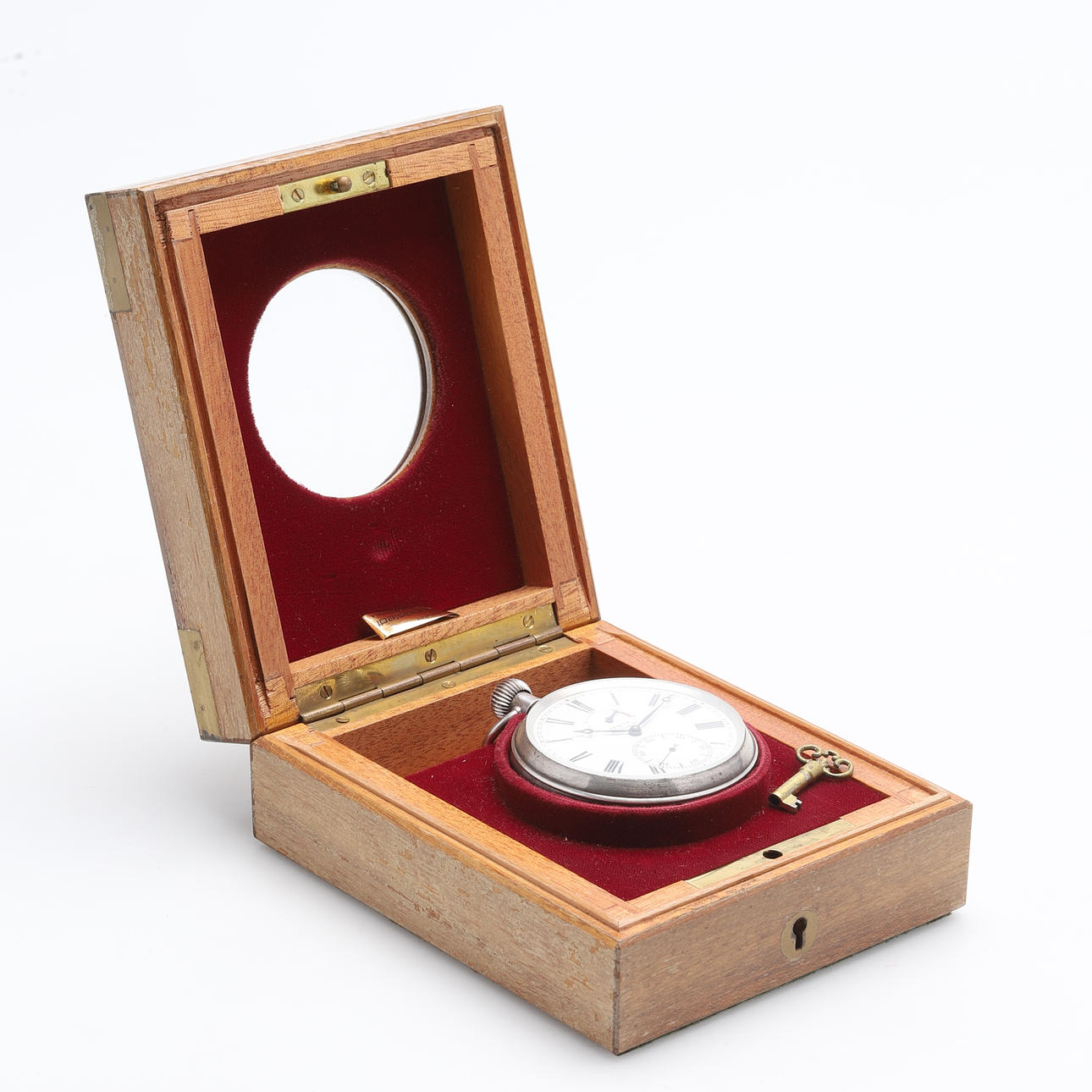 Diameter 60mm. Workshop number 6701818 Case number 9670771. Mahogany case with key.