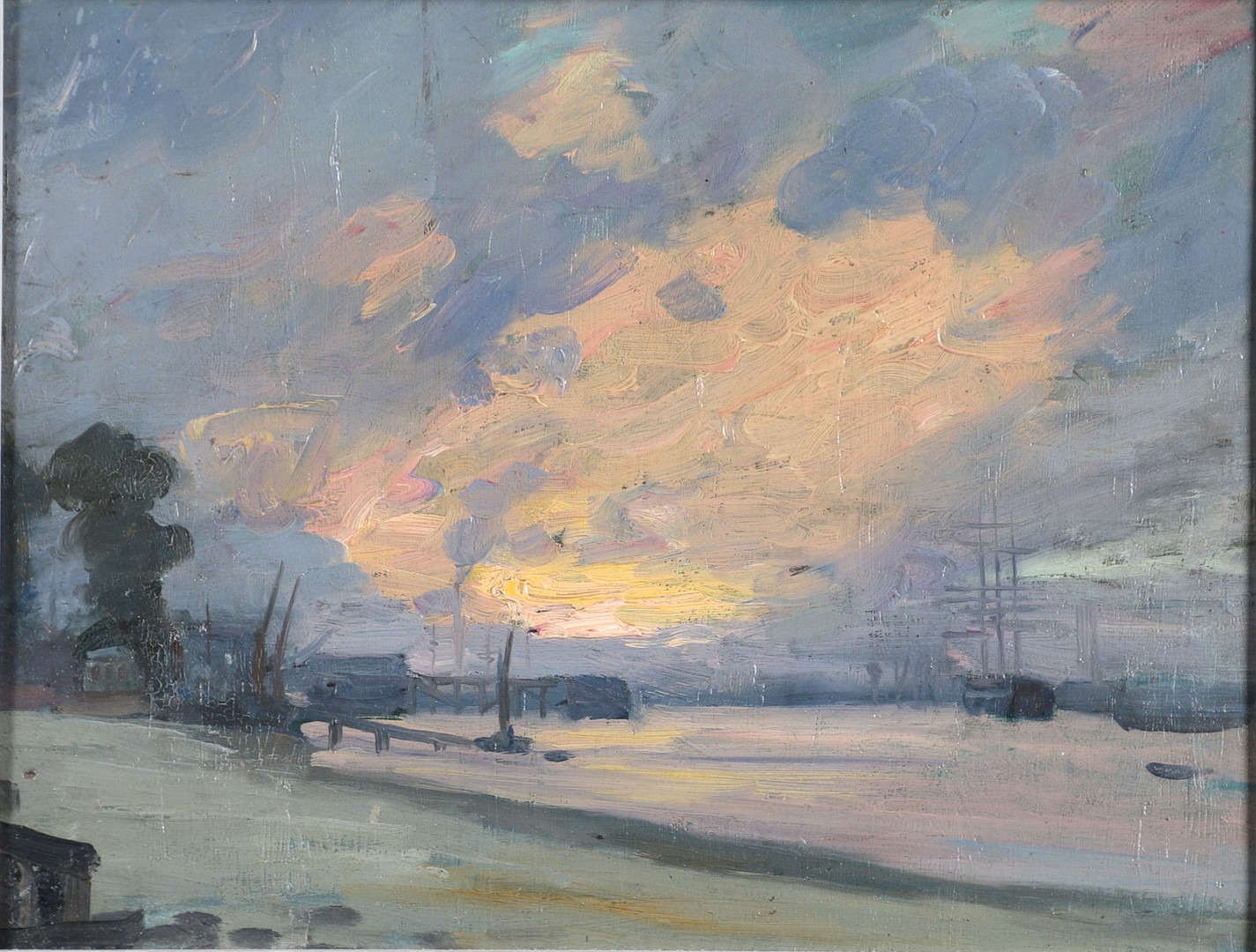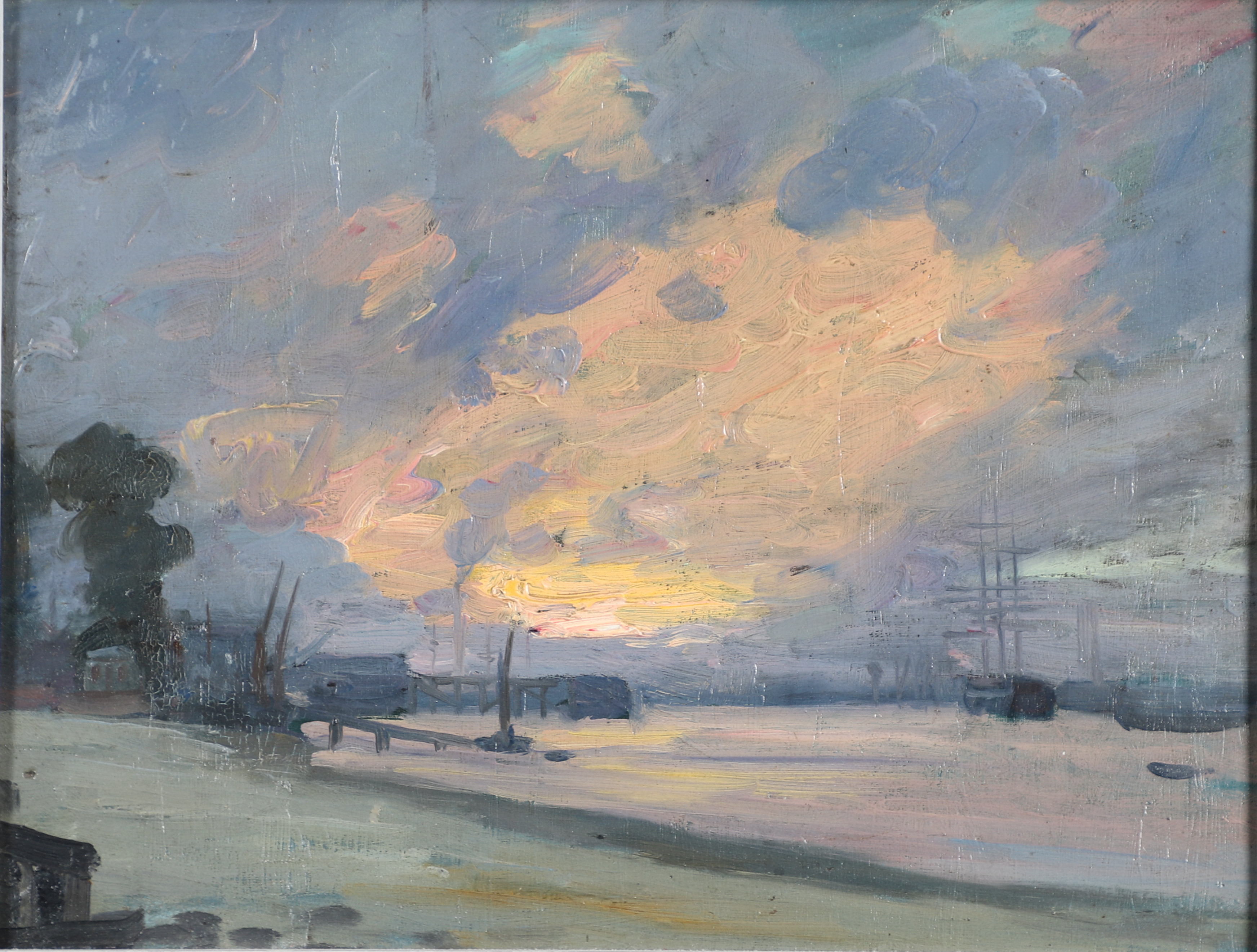 4068913. HERBERT BARNARD JOHN EVERETT (1876/7-1949). STORMY SUNSET, GREENWICH.