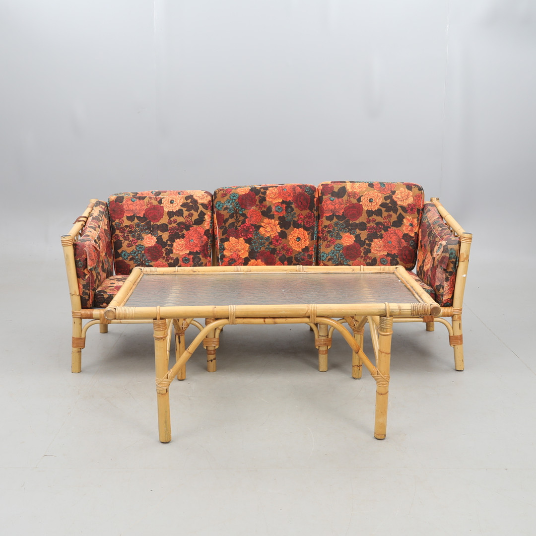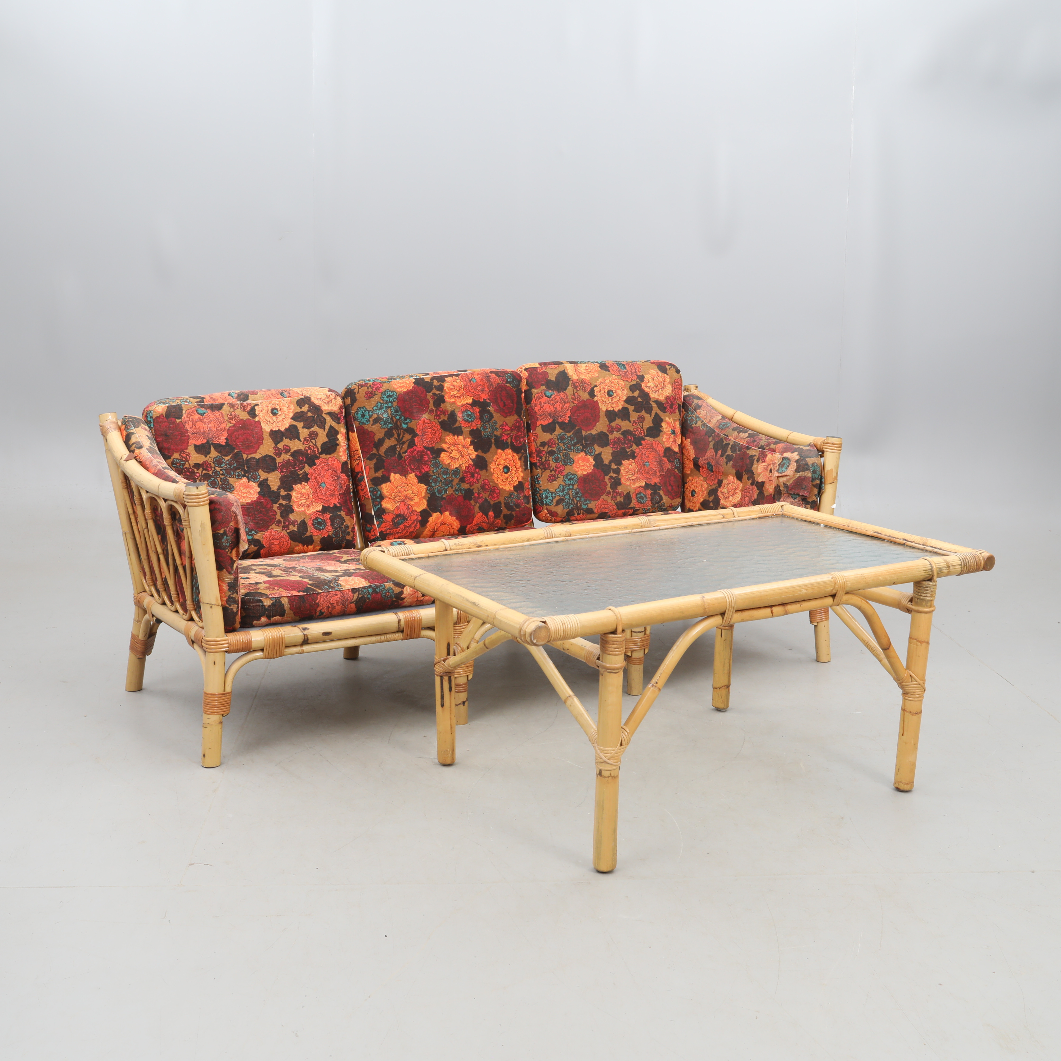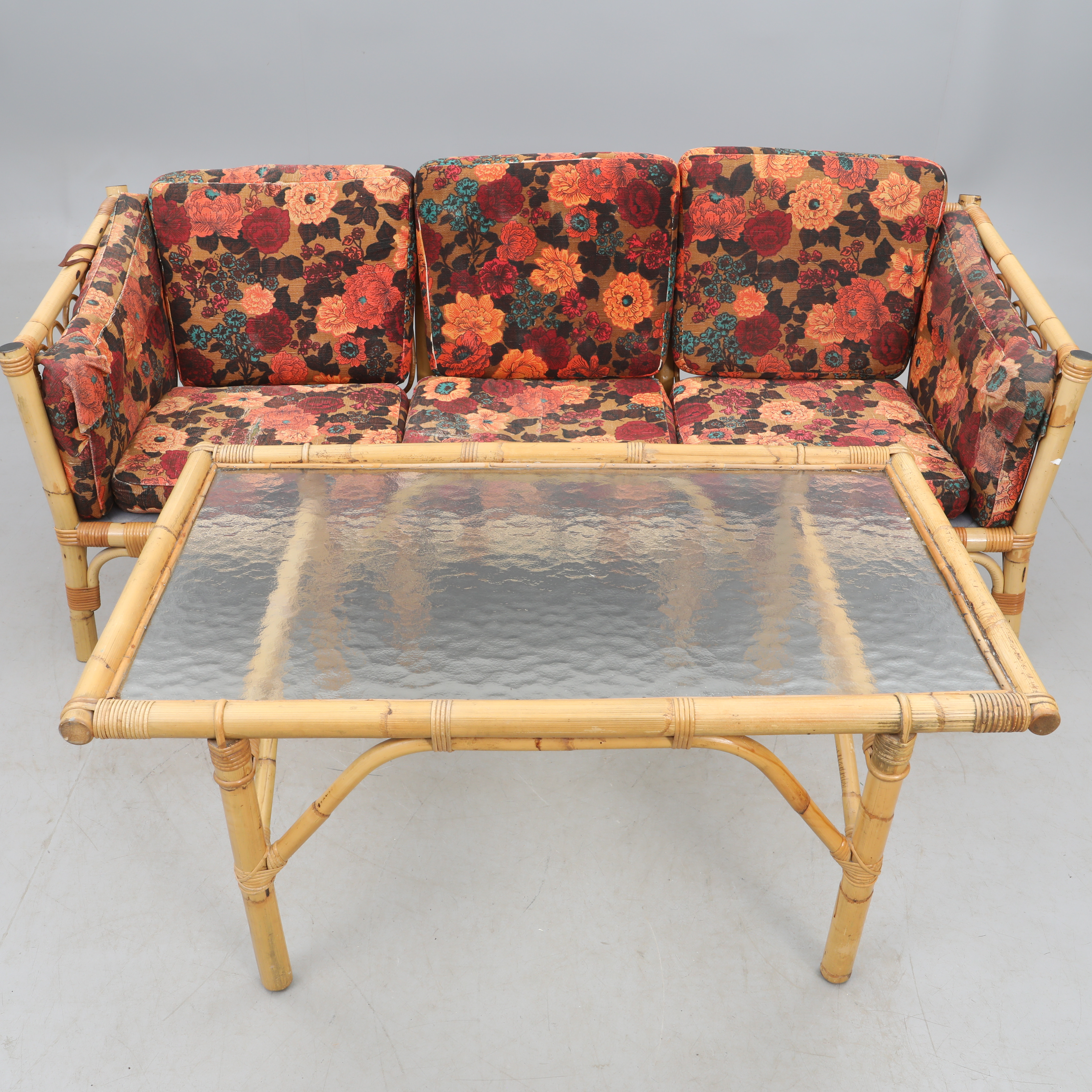 4069751. GARDEN SOFA AND TABLE, bamboo/glass, 1970s.