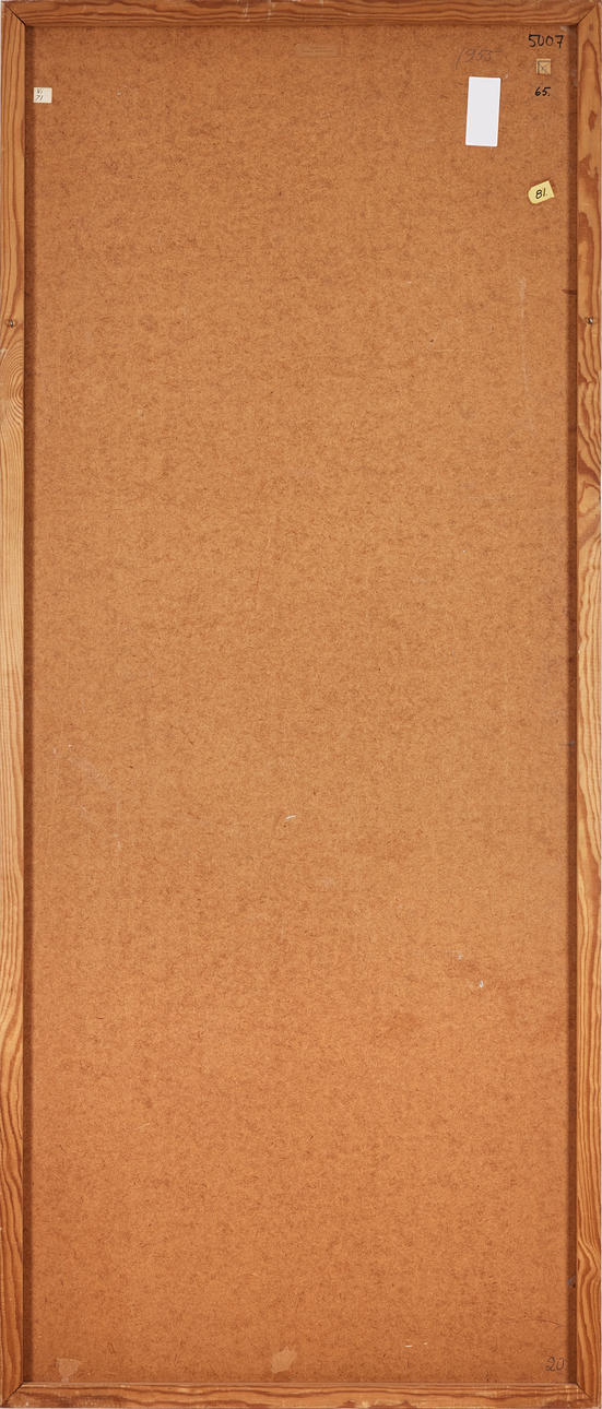 Oil on panel, 176 x 74,5 cm, frame dimensions 178 x 76,5 cm. Signed Edvard Andersson, on verso dated 1955.