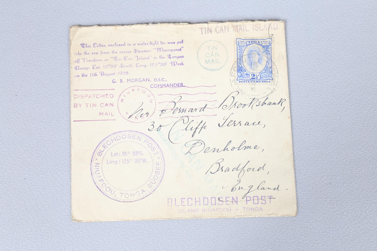 POSTAL HISTORY: 1938 TIN CAN MAIL COVER.