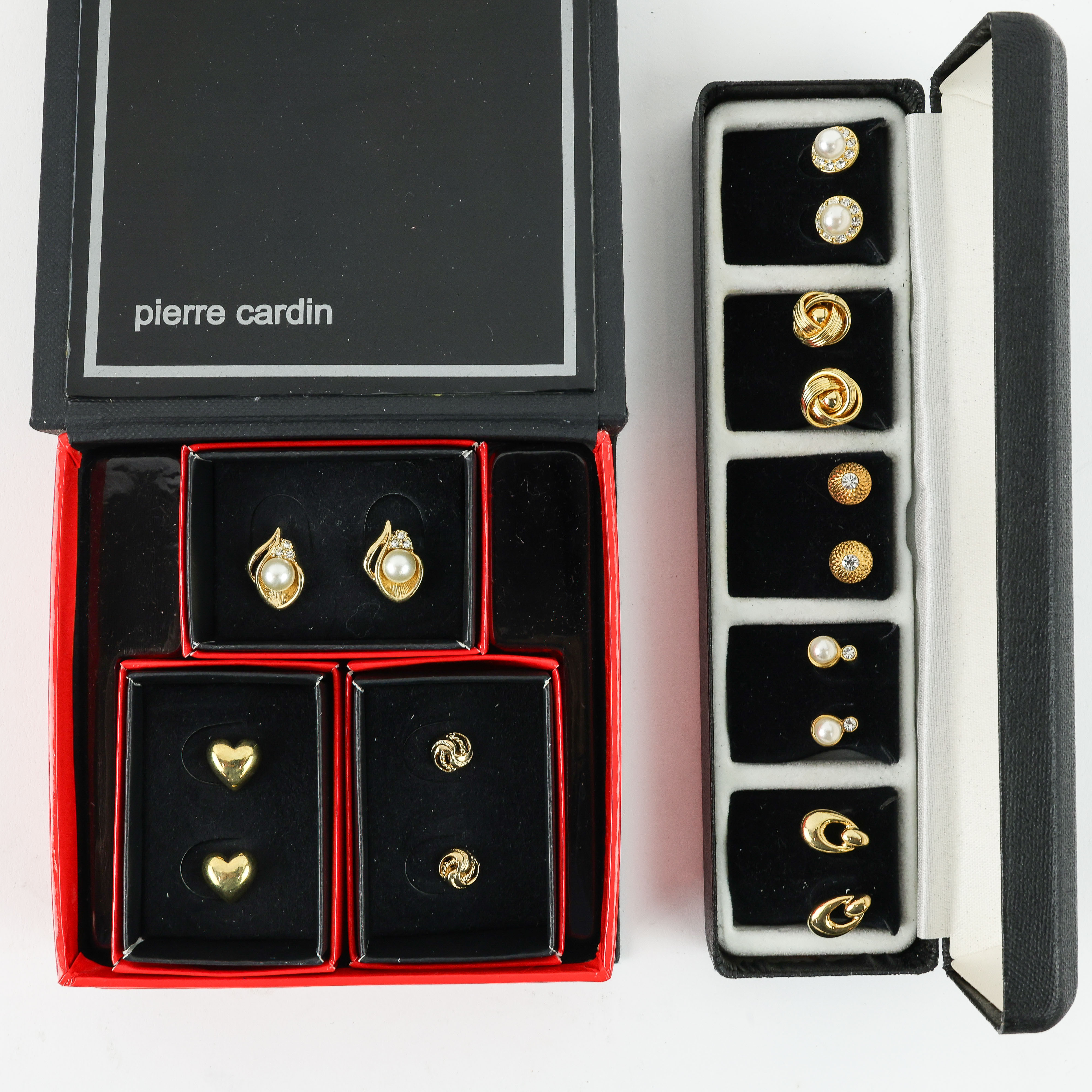 4075767. PIERRE CARDIN EARRING SETS; 2 DIFFERING, BOXED.