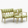 Consisting of sofa, 2 armchairs, 2 chairs, eclectic Sofa width 125cm, seat height 43cm.