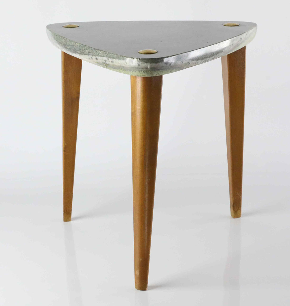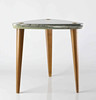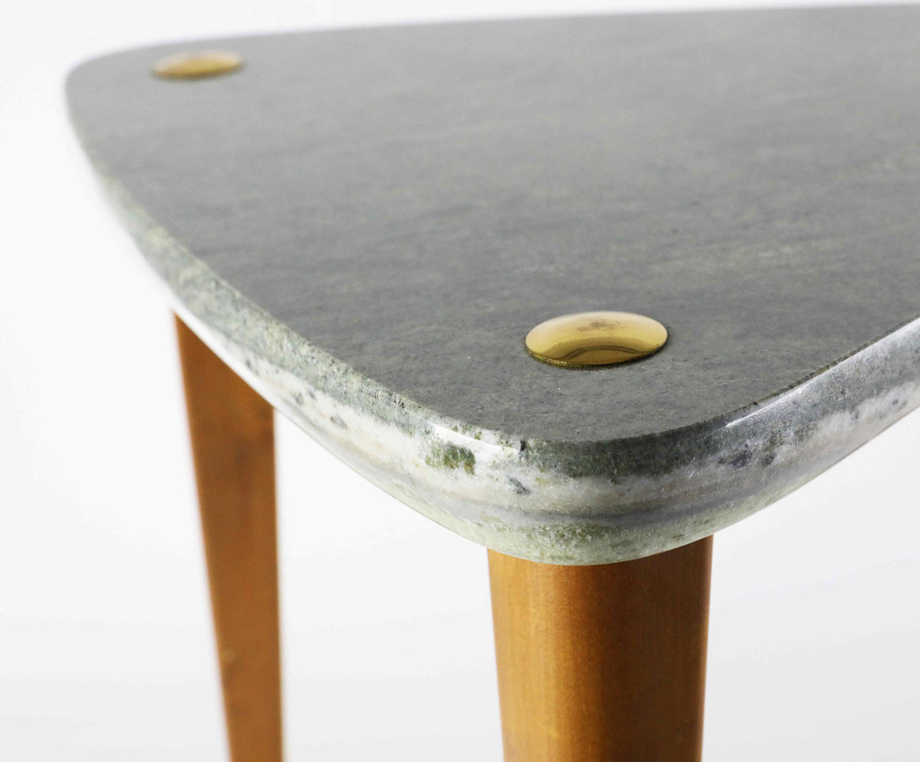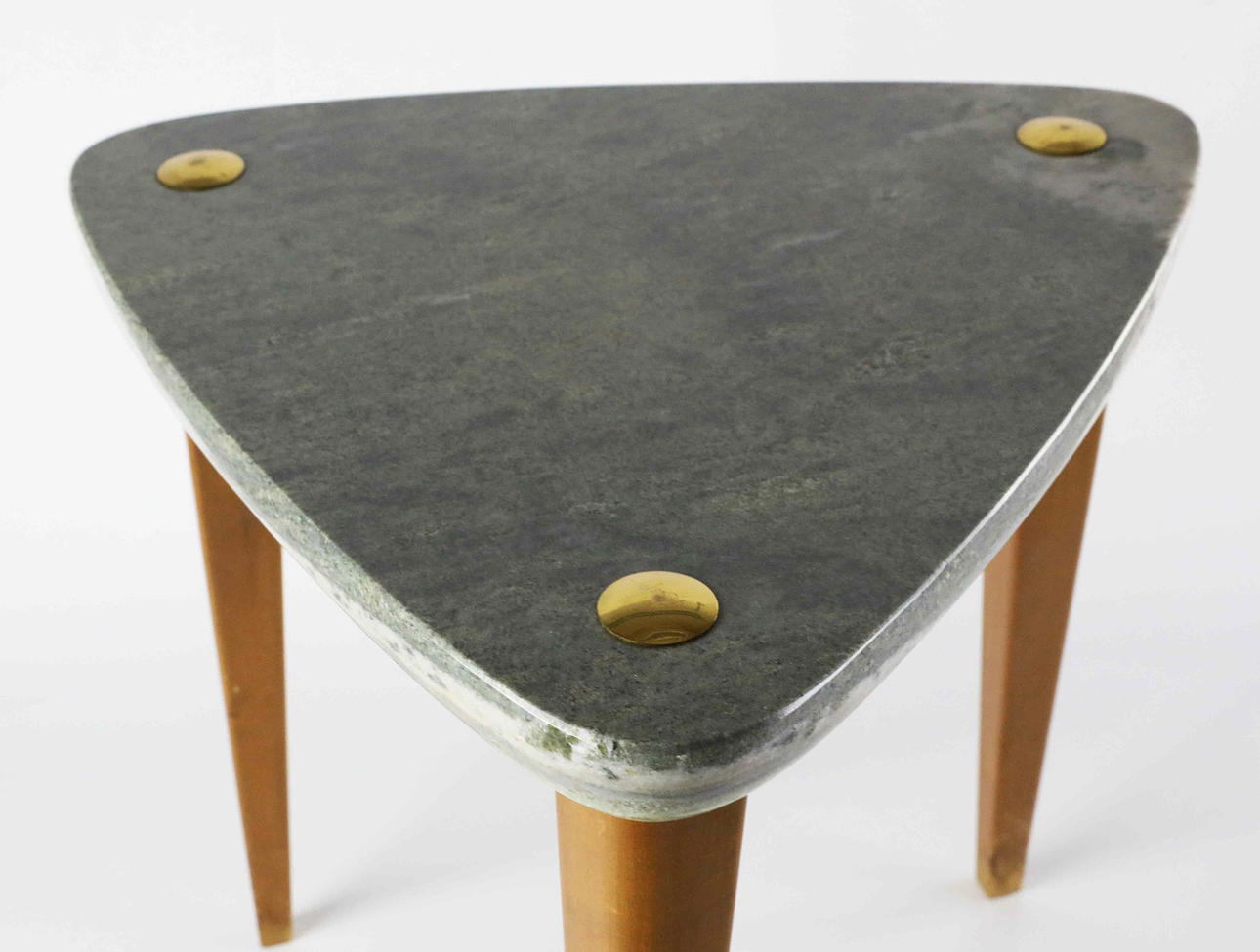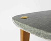 Stone top with brass details, legs in teak. Height 35 cm Diameter approx. 35 cm.