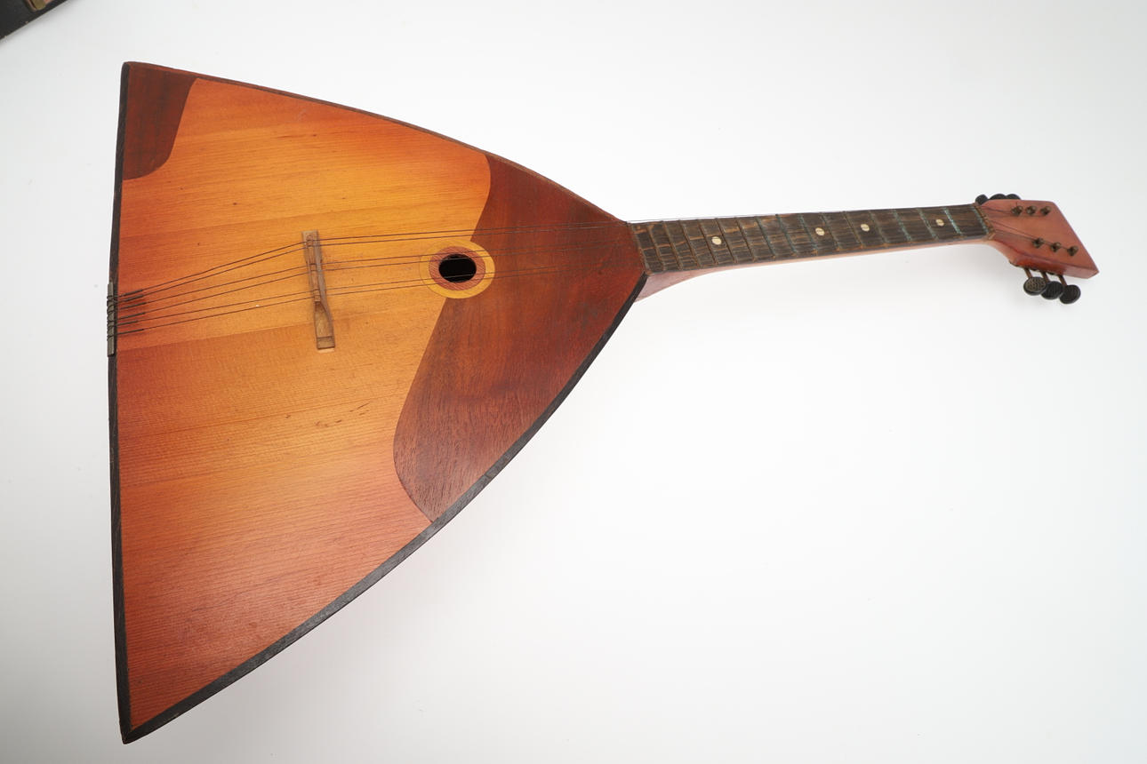 case, together with a Russian Balalaika, 68 x cm long x 39cm wide.