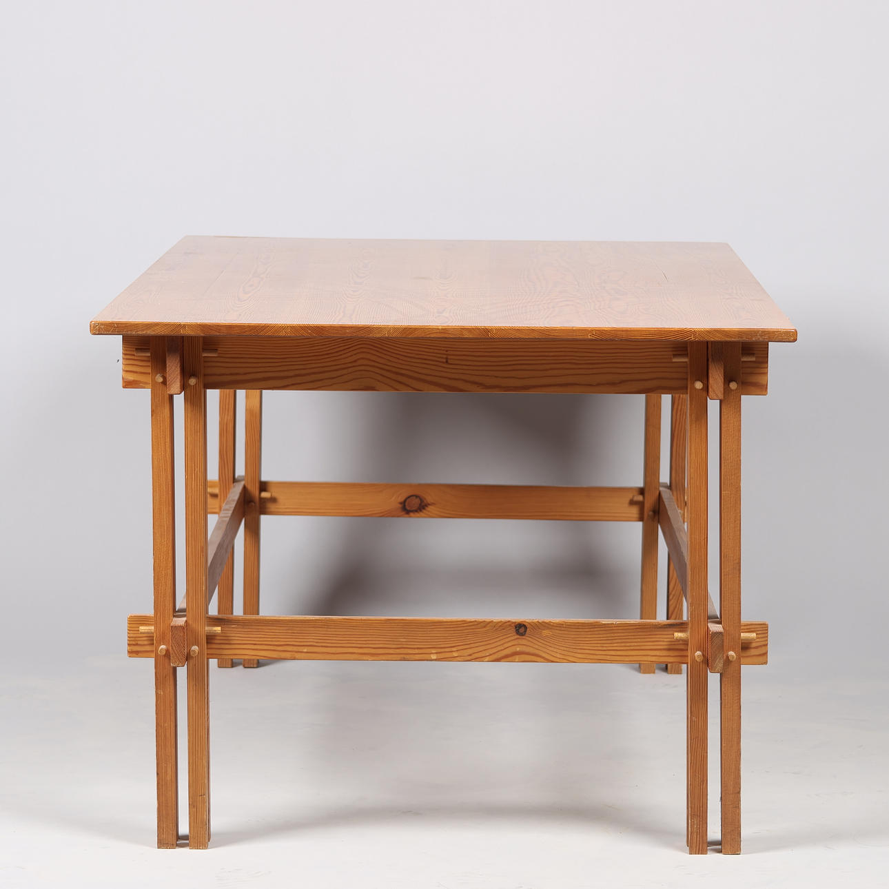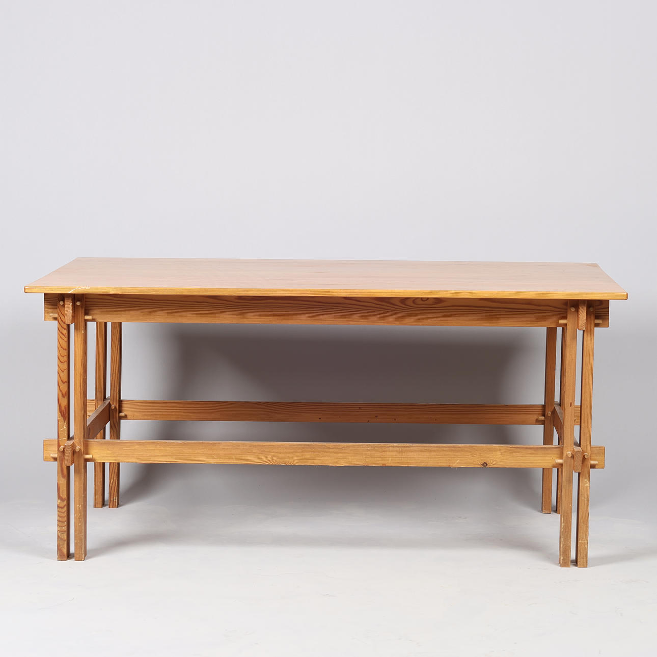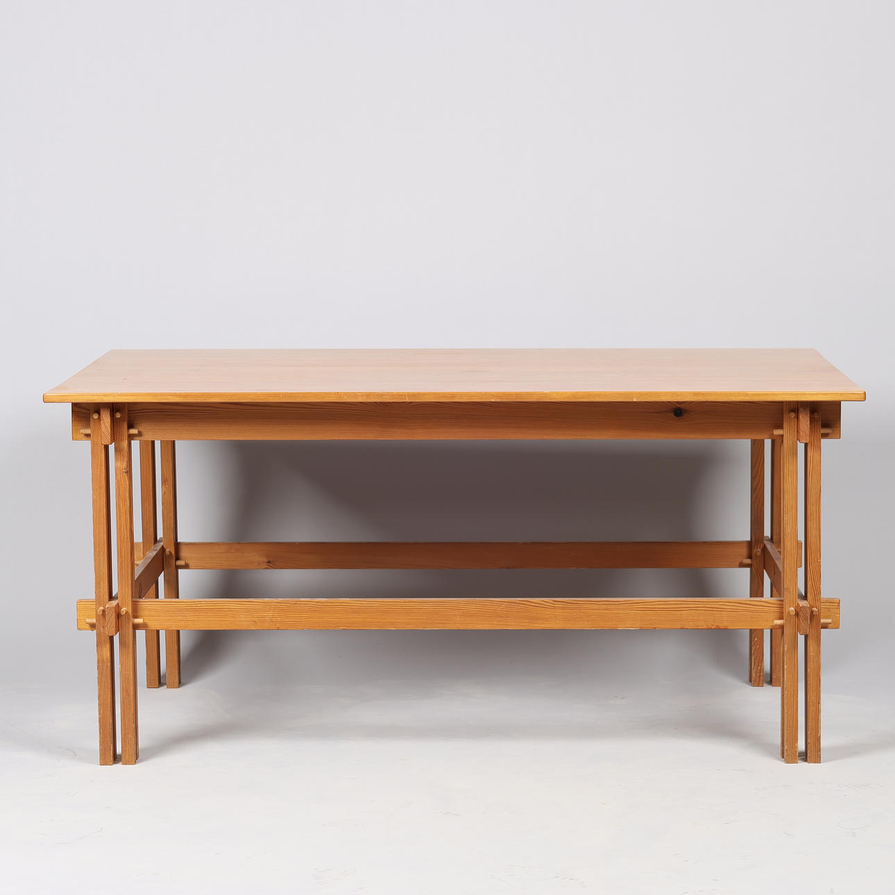 Square coffee table made of pine. Height: 57 cm. Length: 120.5 cm. Width: 73.5 cm.