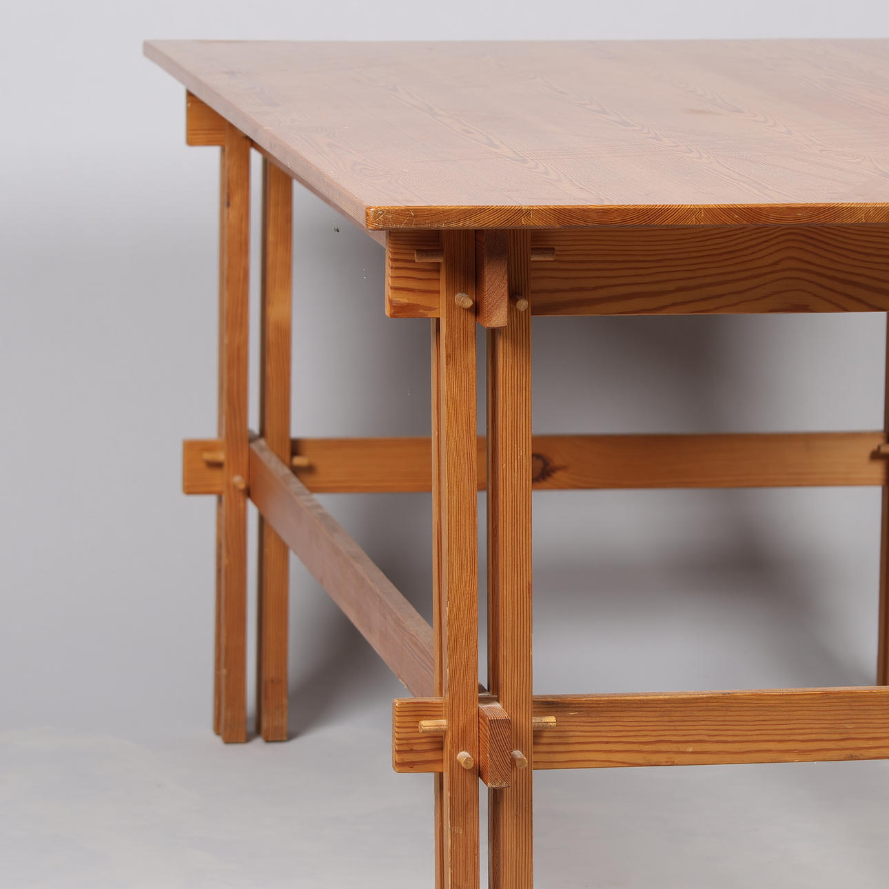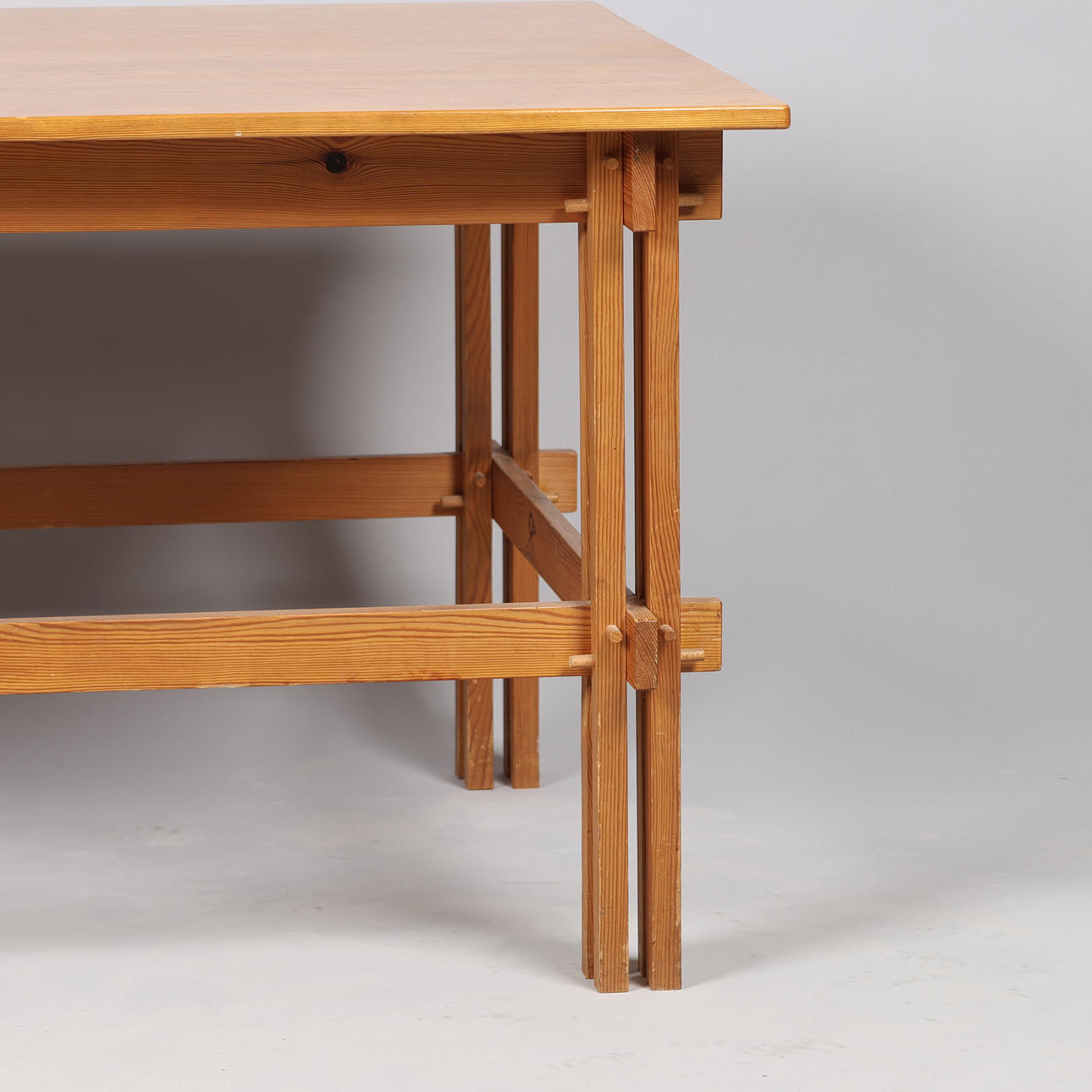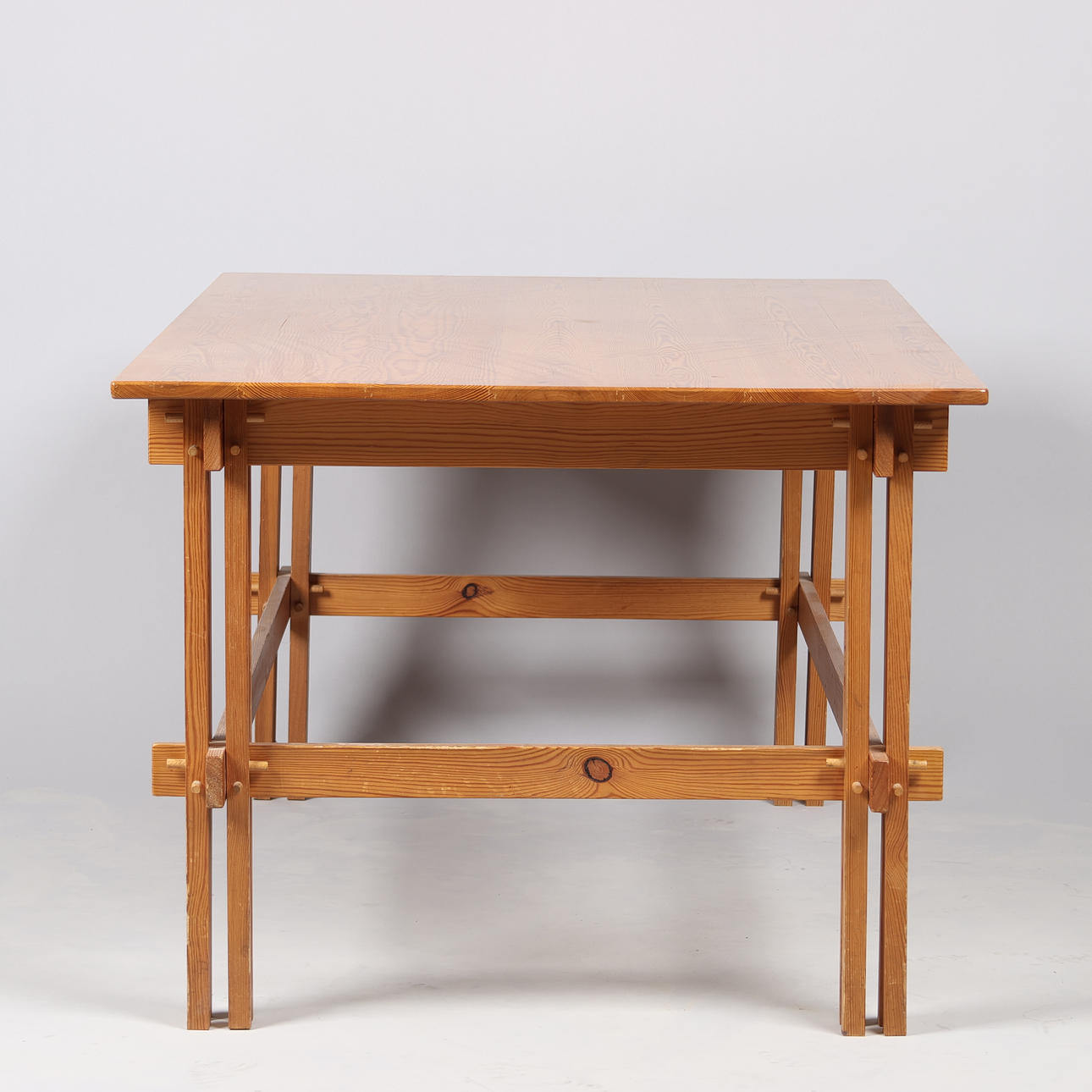 Square coffee table made of pine. Height: 57 cm. Length: 120.5 cm. Width: 73.5 cm.