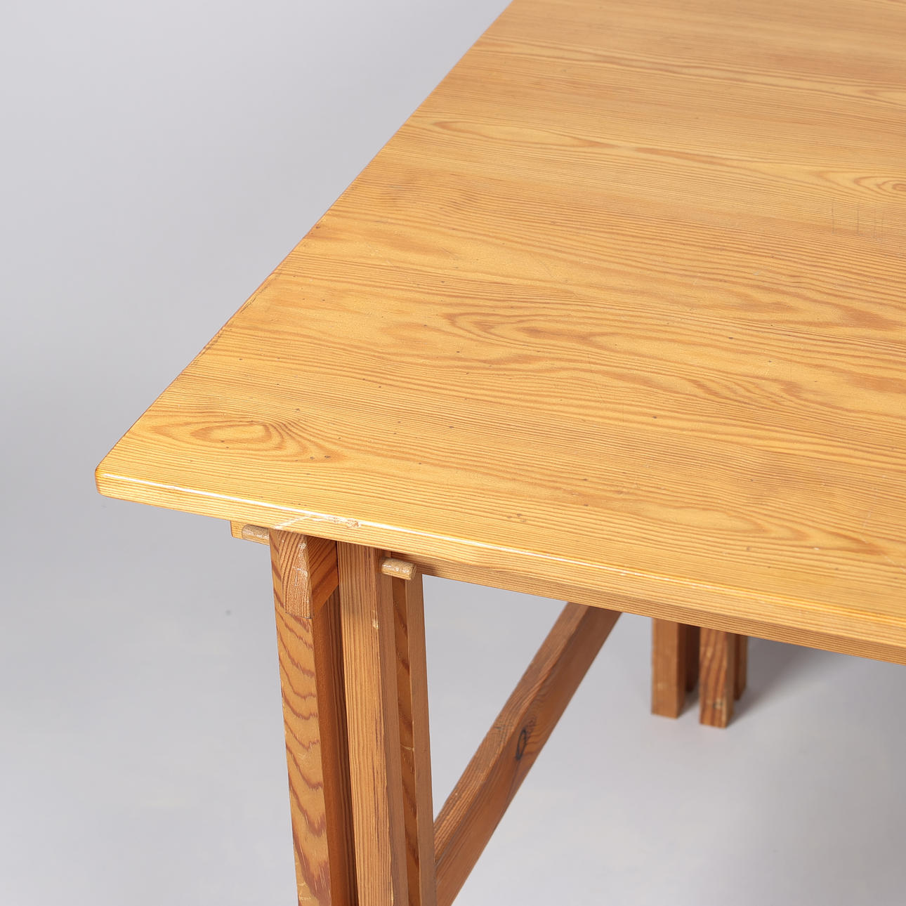 Age and use traces, including scratches and cracks on the worktop as well as splinters on the frame. Small area of wear in paintwork on countertop.