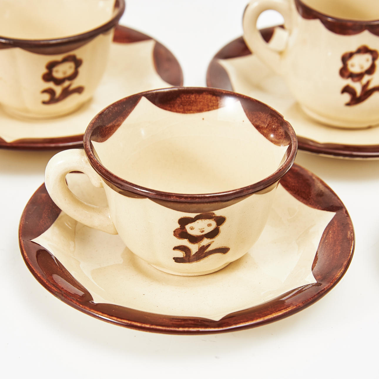3 cups with 4 saucers, a coffee pot a cream jug, a bowl, height about 4-12 cm, diameter of the saucer about 10 cm.