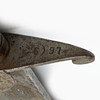 Normal wear and tear, the edge with multiple notches. Leather cover of the mount with little damage.