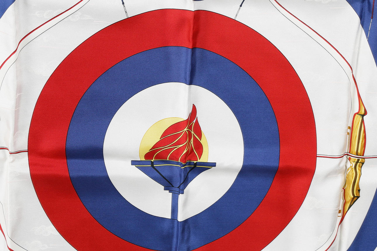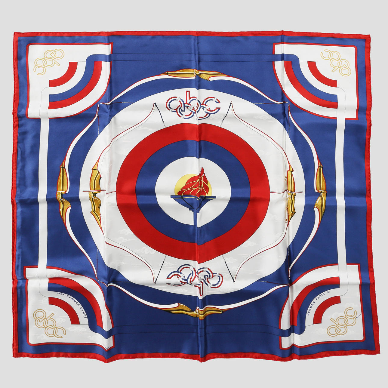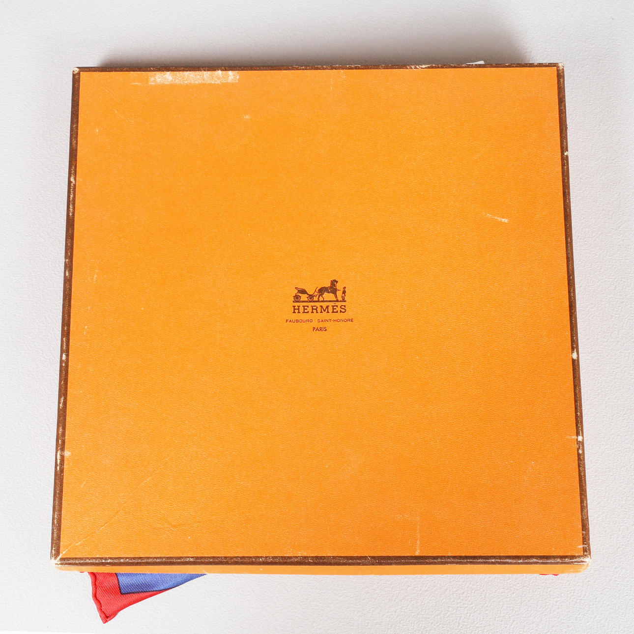 the scarf was designed for the 1984 LA Olymipcs, Housed within the original Hermes box, the scarf 88cm by 88cm.