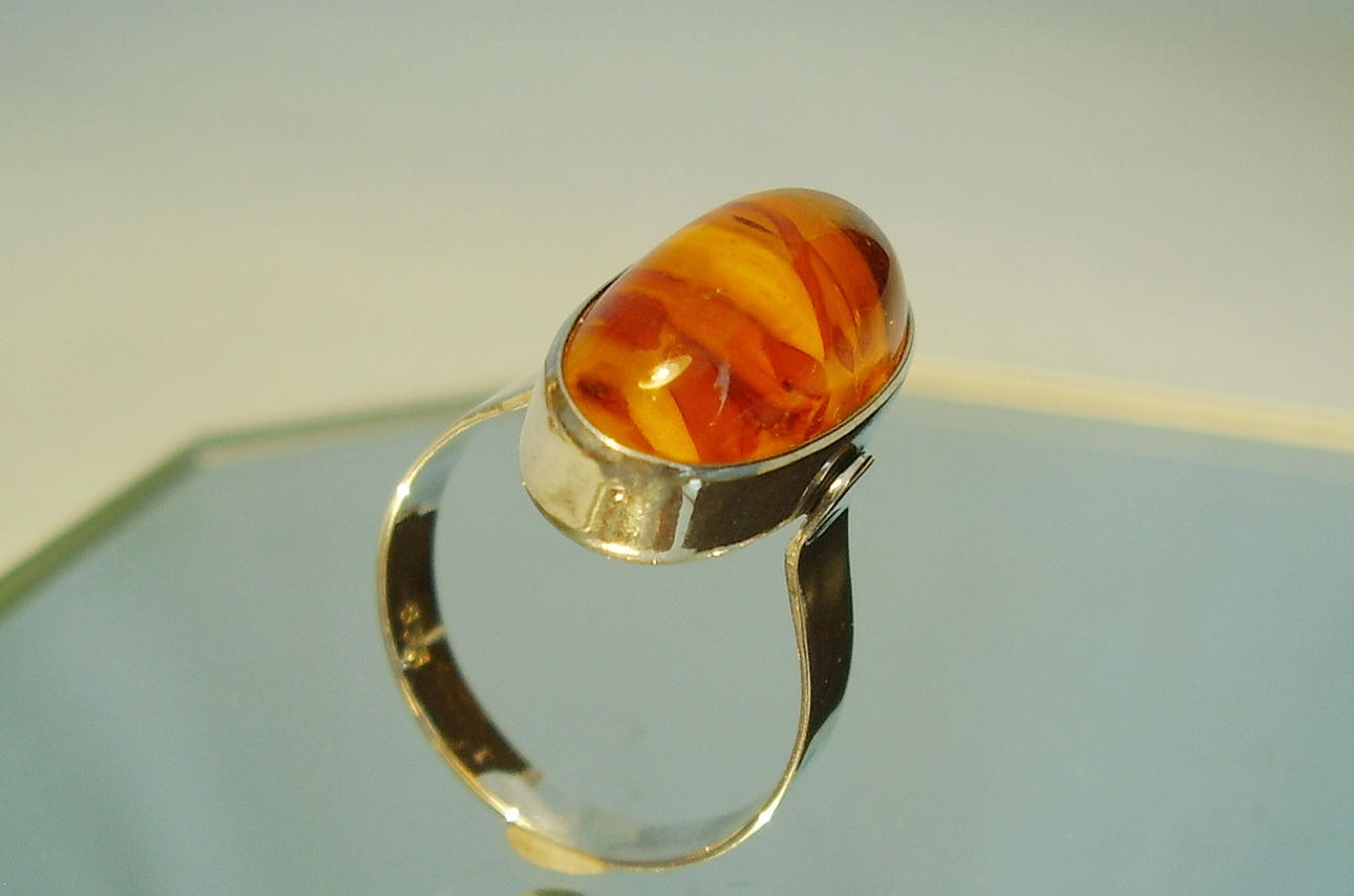 409244. AMBER RING SILVER 835 signed Fischlandschmuck.