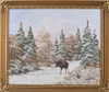 Landscape with Moose, signed, 51x62 cm, frame dimensions, 63x73 cm.