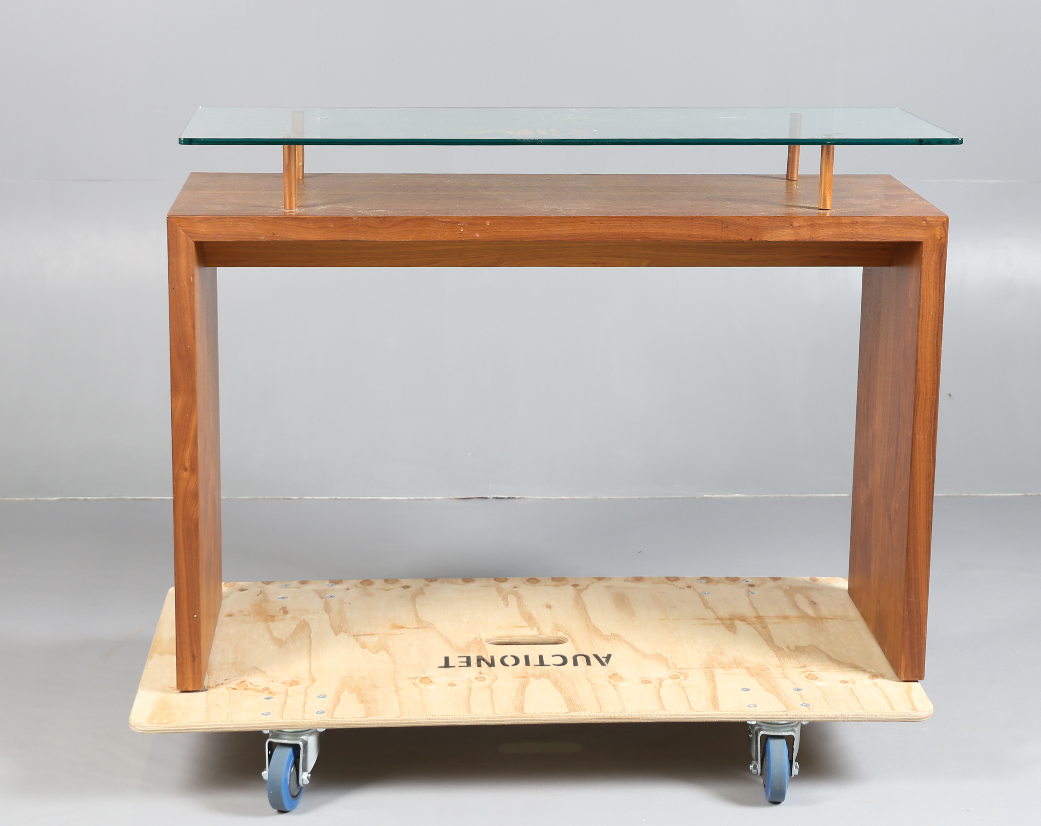 4094678. A MODERN GLASS TOPPED CONSOLE TABLE.