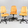 Three model 12115 Verksam swivel office chairs by Ikea, with labels to two, approx. 101cm height, 42cm width, 47cm depth. (3).