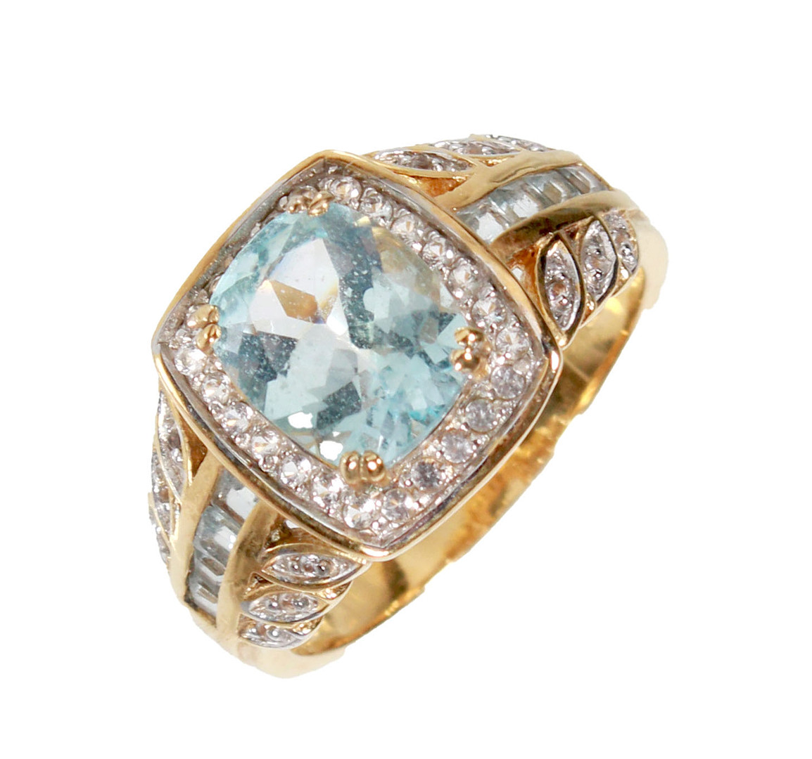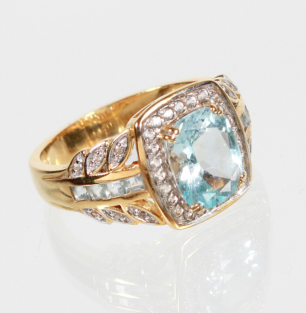 4098292. BLUE TOPAZ RING, SILVER PLATED.